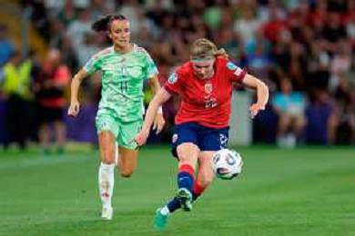 TVEM July 16, 2025 Geneva, Switzerland - Norway vs Italy - Women's UEFA Euro 2025 - Stade de Geneve. In the pic: Signe Gaupset of Norway in action against Sofia Cantore of Italy ©TVEM Emmanuele Mastrodonato - AGENZIA ALDO LIVERANI SAS