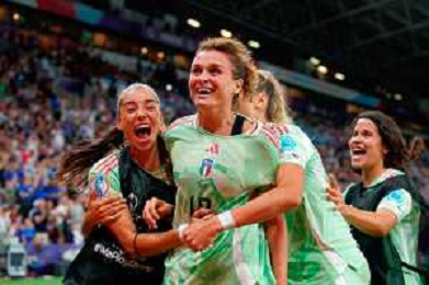 TVEM July 16, 2025 Geneva, Switzerland - Norway vs Italy - Women's UEFA Euro 2025 - Stade de Geneve. In the pic: Cristiana Girelli of Italy celebrates after scoring a goal with teammates ©TVEM Emmanuele Mastrodonato - AGENZIA ALDO LIVERANI SAS