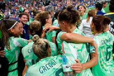 TVEM July 16, 2025 Geneva, Switzerland - Norway vs Italy - Women's UEFA Euro 2025 - Stade de Geneve. In the pic: players of Italy celebrates the victory ©TVEM Emmanuele Mastrodonato - AGENZIA ALDO LIVERANI SAS