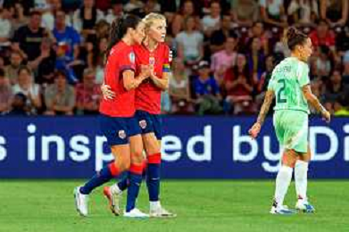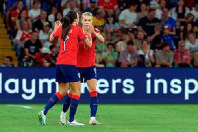TVEM July 16, 2025 Geneva, Switzerland - Norway vs Italy - Women's UEFA Euro 2025 - Stade de Geneve. In the pic: Ada Hegerberg of Norway celebrates after scoring a goal with teammates ©TVEM Emmanuele Mastrodonato - AGENZIA ALDO LIVERANI SAS