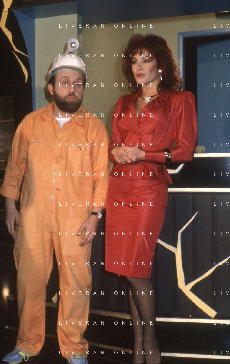 DIAP-RETROSPETTIVA CARMEN RUSSO ATTRICE E BALLERINA NELLA FOTO CARMEN RUSSO CON ENRICO BERUSCHI NELL'ANNO 1984 NELLA TRASMISSIONE TELEVISIVA “ DRIVE IN“ AG ALDO LIVERANI SAS