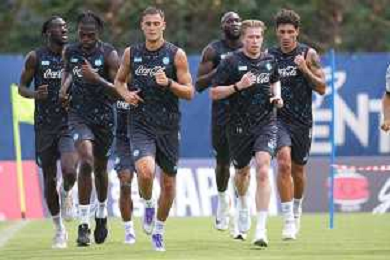 NAPOLI ALLENAMENTO RITIRO PRECAMPIONATO DIMARO 18.07.2025 NELLA FOTO: Kevin De Bruyne, Frank Anguissa FOTO MOSCA/AG. ALDO LIVERANI- AGENZIA ALDO LIVERANI SAS