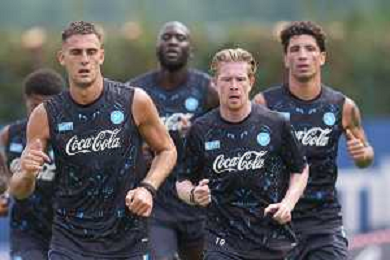 NAPOLI ALLENAMENTO RITIRO PRECAMPIONATO DIMARO 18.07.2025 NELLA FOTO: LORENZO LUCCA, Kevin De Bruyne, Luca Marianucci, Romelu Lukaku FOTO MOSCA/AG. ALDO LIVERANI- AGENZIA ALDO LIVERANI SAS