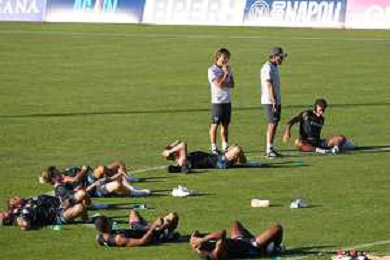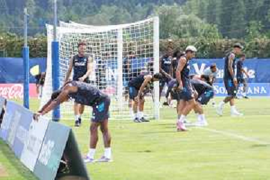 NAPOLI ALLENAMENTO RITIRO PRECAMPIONATO DIMARO 18.07.2025 NELLA FOTO: GIOCATORI STREMATI AL TERMINE DELL'ALLENAMENTO FOTO MOSCA/AG. ALDO LIVERANI- AGENZIA ALDO LIVERANI SAS