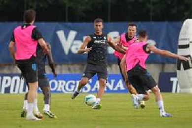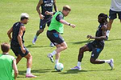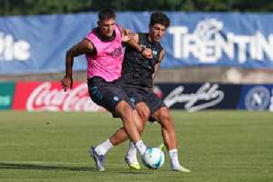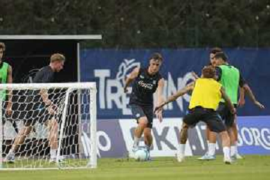 NAPOLI ALLENAMENTO RITIRO PRECAMPIONATO DIMARO 18.07.2025 NELLA FOTO: LORENZO LUCCA, Kevin De Bruyne , David Neres FOTO MOSCA/AG. ALDO LIVERANI- AGENZIA ALDO LIVERANI SAS