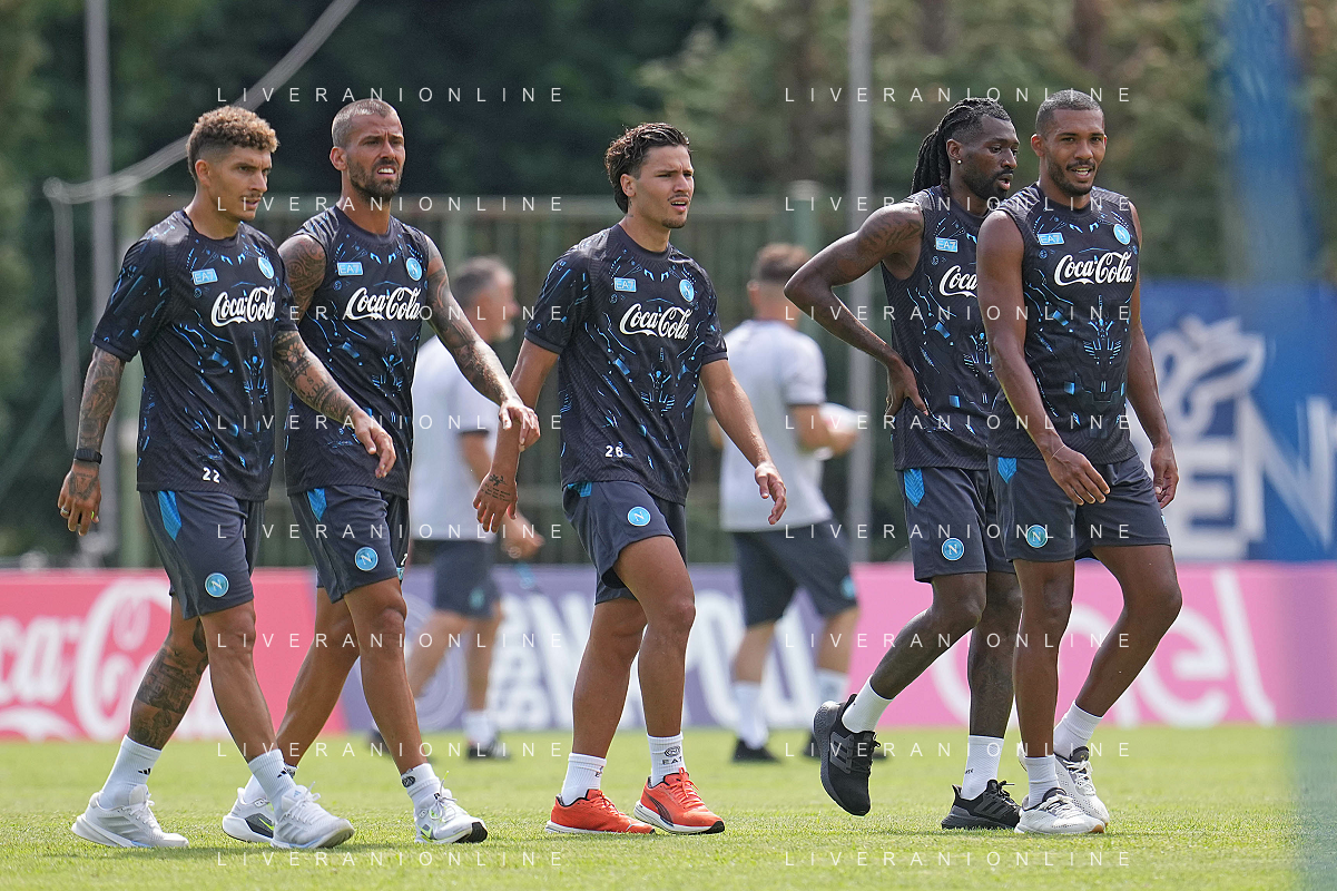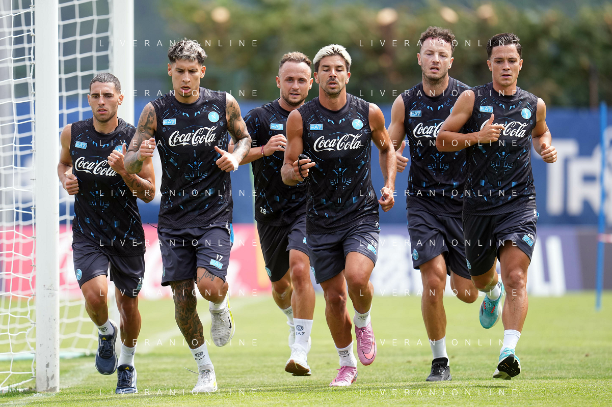 NAPOLI ALLENAMENTO RITIRO PRECAMPIONATO DIMARO 18.07.2025 NELLA FOTO: Mathias Olivera, Stanislav Lobotka, Giovanni Simeone, Amir Rrahmani, Giacomo Raspadori FOTO MOSCA/AG. ALDO LIVERANI- AGENZIA ALDO LIVERANI SAS