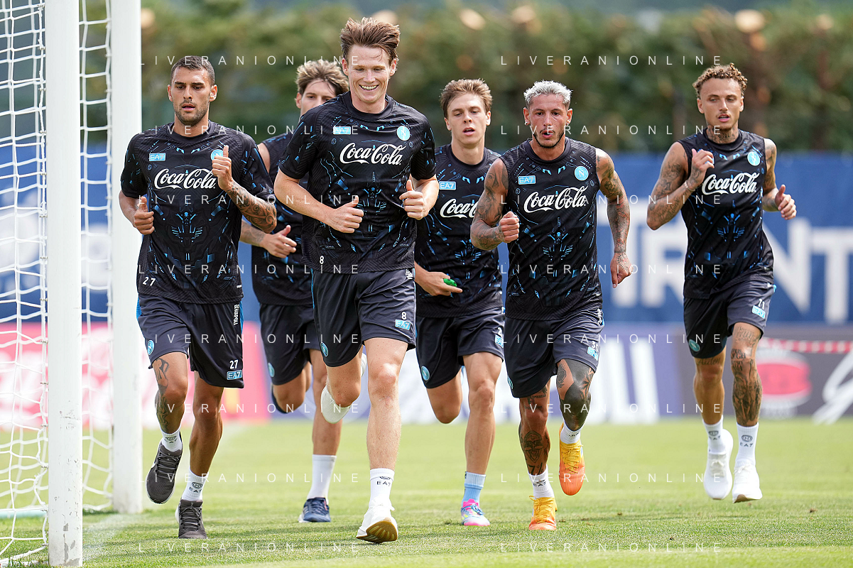 NAPOLI ALLENAMENTO RITIRO PRECAMPIONATO DIMARO 18.07.2025 NELLA FOTO: Scott McTominay, Pasquale Mazzocchi, Noa Lang FOTO MOSCA/AG. ALDO LIVERANI- AGENZIA ALDO LIVERANI SAS