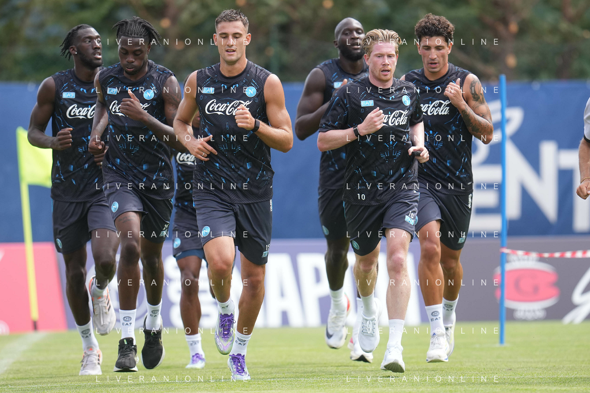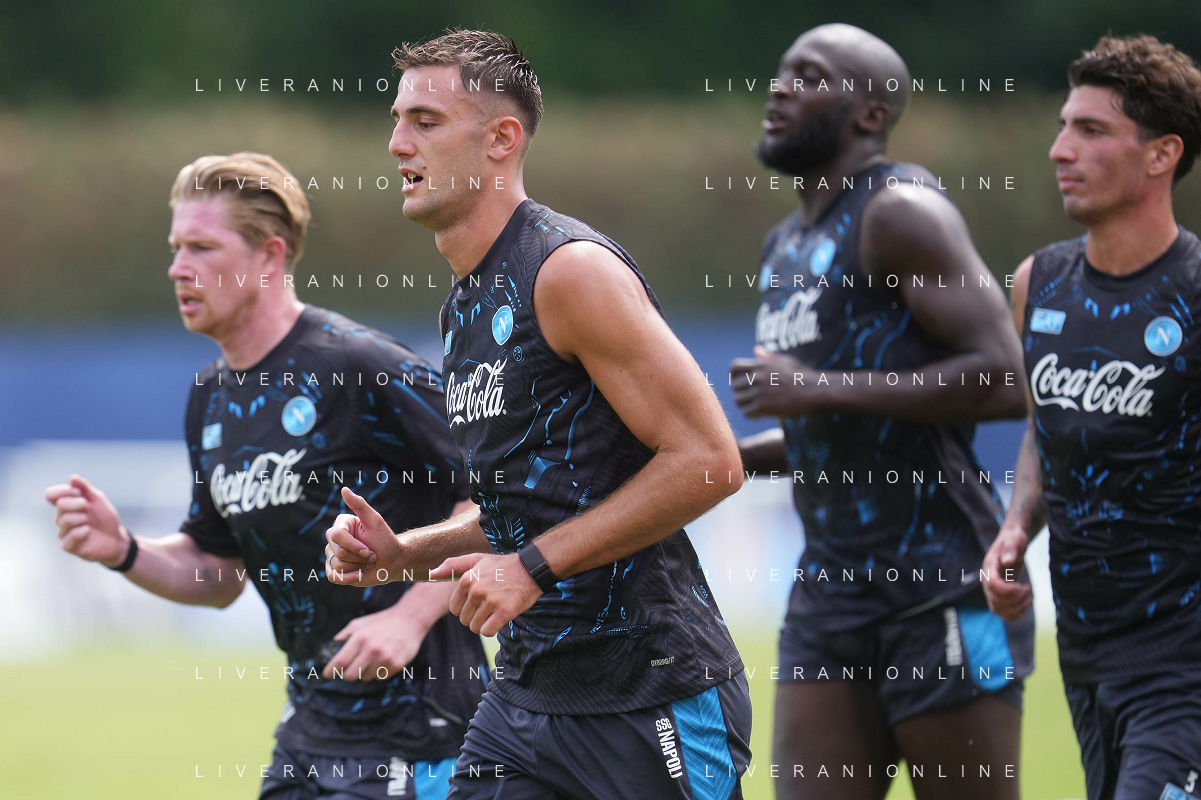 NAPOLI ALLENAMENTO RITIRO PRECAMPIONATO DIMARO 18.07.2025 NELLA FOTO: LORENZO LUCCA, Kevin De Bruyne, Luca Marianucci, FOTO MOSCA/AG. ALDO LIVERANI- AGENZIA ALDO LIVERANI SAS