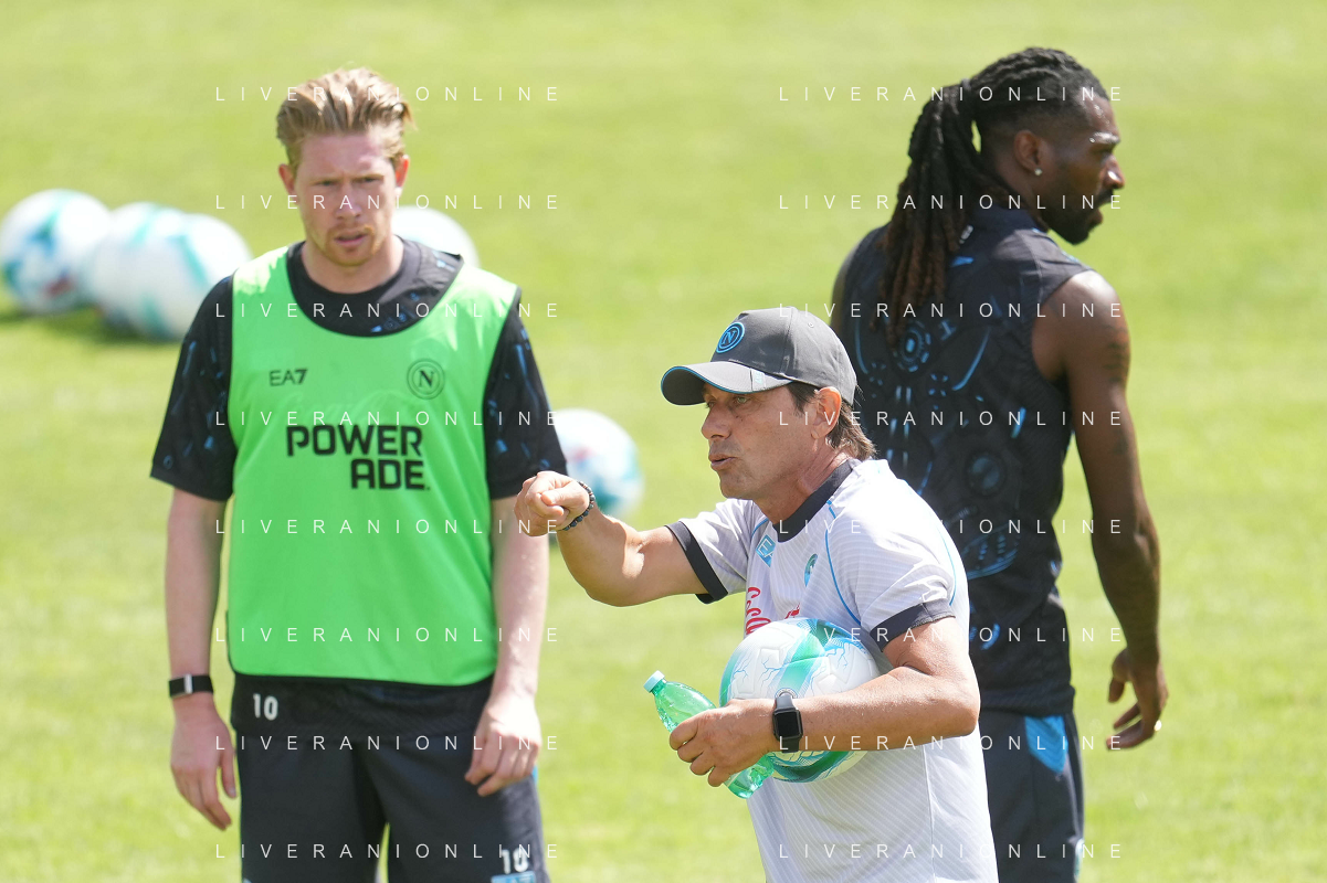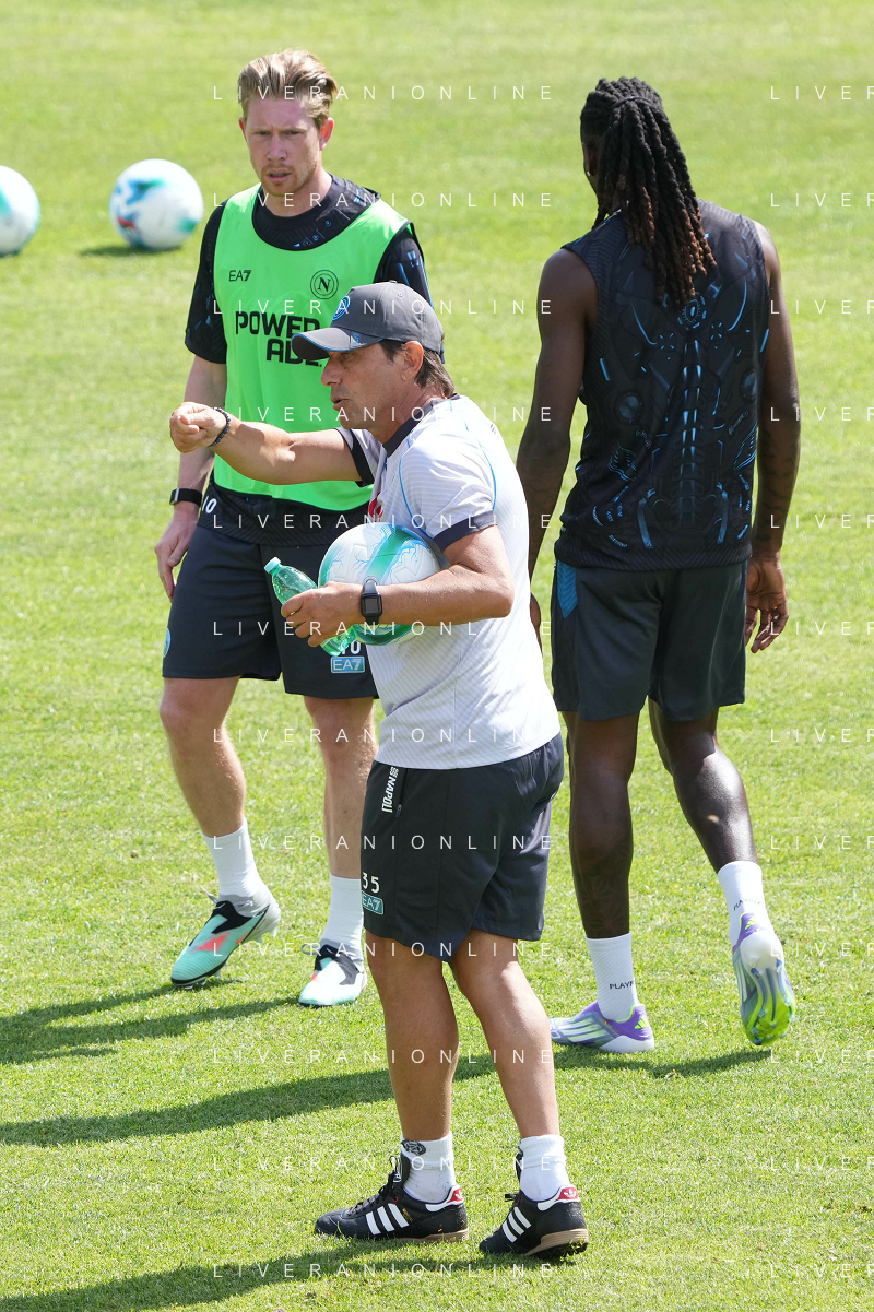 NAPOLI ALLENAMENTO RITIRO PRECAMPIONATO DIMARO 18.07.2025 NELLA FOTO: ANTONIO CONTE, Kevin De Bruyne, Frank Anguissa FOTO MOSCA/AG. ALDO LIVERANI- AGENZIA ALDO LIVERANI SAS