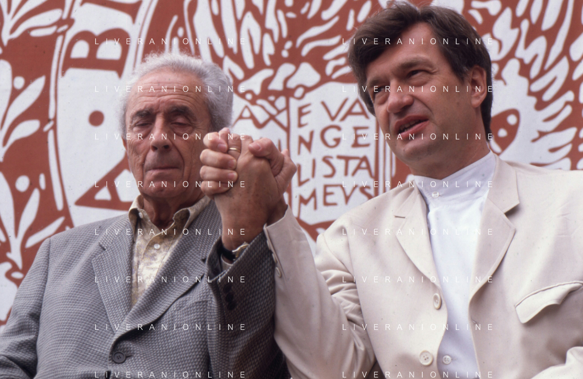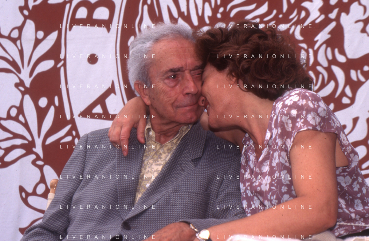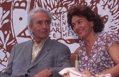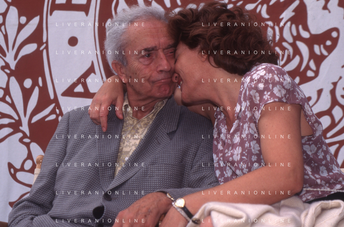 DIAP-RETROSPETTIVA MICHELANGELO ANTOGNONI REGISTA NELLA FOTO MICHELANGELO ANTONIONI CON LA MOGLIE ENRICA FICO A VENEZIA NELL'ANNO 1995 AG ALDO LIVERANI SAS
