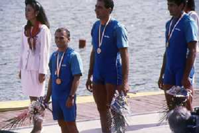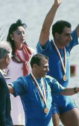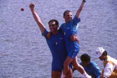 DIAP-RETROSPETTIVA GIUSEPPE DI CAPUA CANOA NELLA FOTO GIUSEPPE DI CAPUA CON I FRATELLI ABBAGNALE ALLE OLIMPIADI DI SEUL NELL'ANNO 1988 AG ALDO LIVERANI SAS