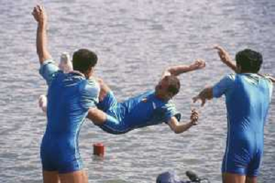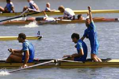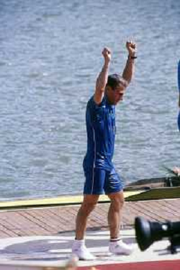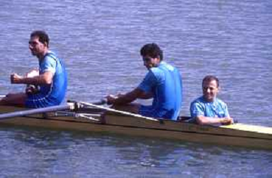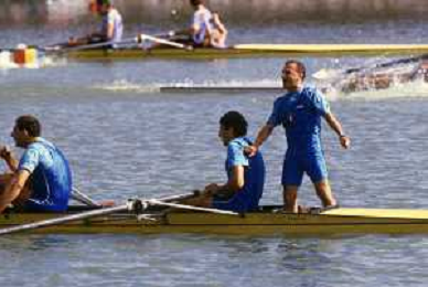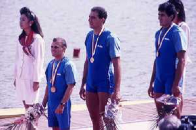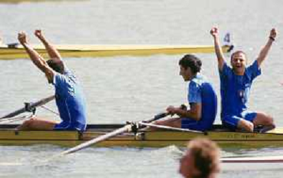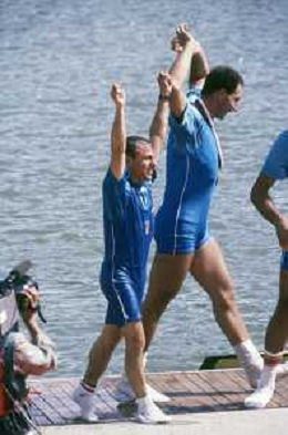 DIAP-RETROSPETTIVA GIUSEPPE DI CAPUA CANOA NELLA FOTO GIUSEPPE DI CAPUA CON I FRATELLI ABBAGNALE NELL'ANNO 1990 AG ALDO LIVERANI SAS