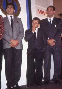 DIAP-RETROSPETTIVA GIUSEPPE DI CAPUA CANOA NELLA FOTO GIUSEPPE DI CAPUA CON I FRATELLI ABBAGNALE NELL'ANNO 1989 AL PREMIO MEAZZA A MILANO AG ALDO LIVERANI SAS