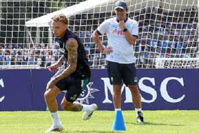 NAPOLI ALLENAMENTO RITIRO PRECAMPIONATO DIMARO 20.07.2025 NELLA FOTO: NOA LANG CON ANTONIO CONTE FOTO MOSCA/AG. ALDO LIVERANI- AGENZIA ALDO LIVERANI SAS