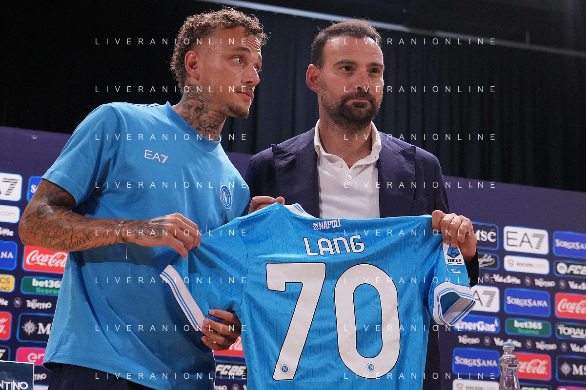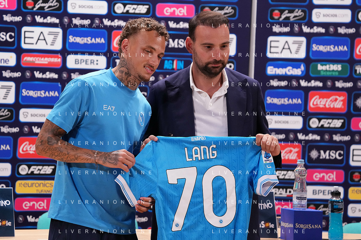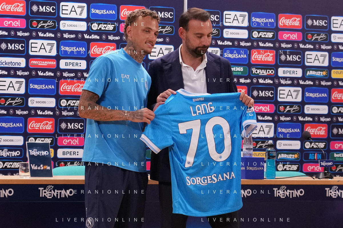 NAPOLI RITIRO PRECAMPIONATO CONFERENZA STAMPA NOA LANG DIMARO 20.07.2025 NELLA FOTO: NOA LANG , MANNA GIOVANNI FOTO MOSCA/AG. ALDO LIVERANI- AGENZIA ALDO LIVERANI SAS