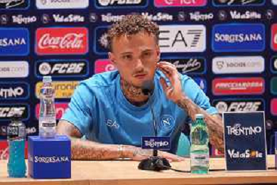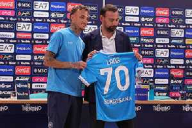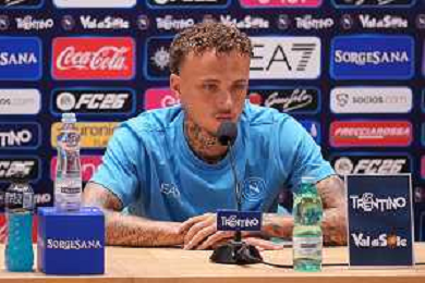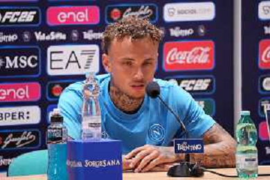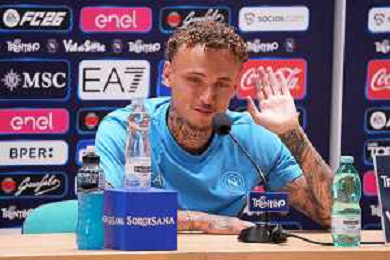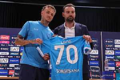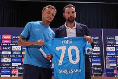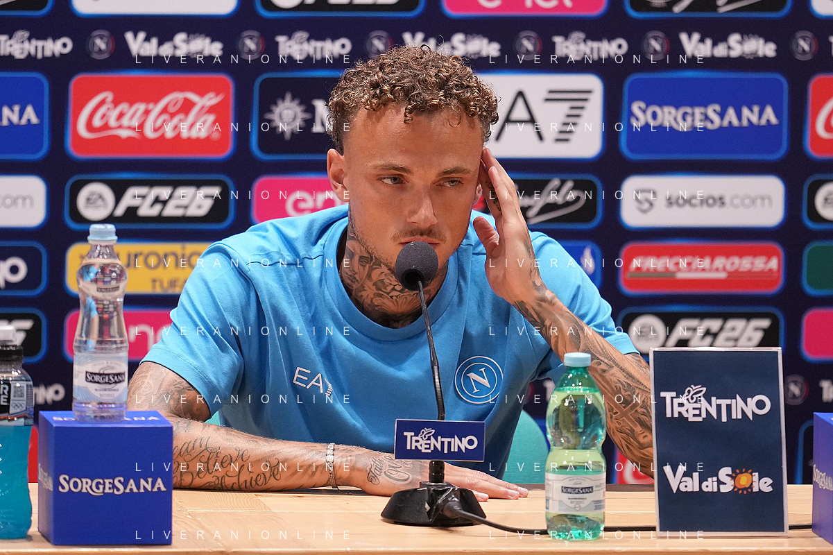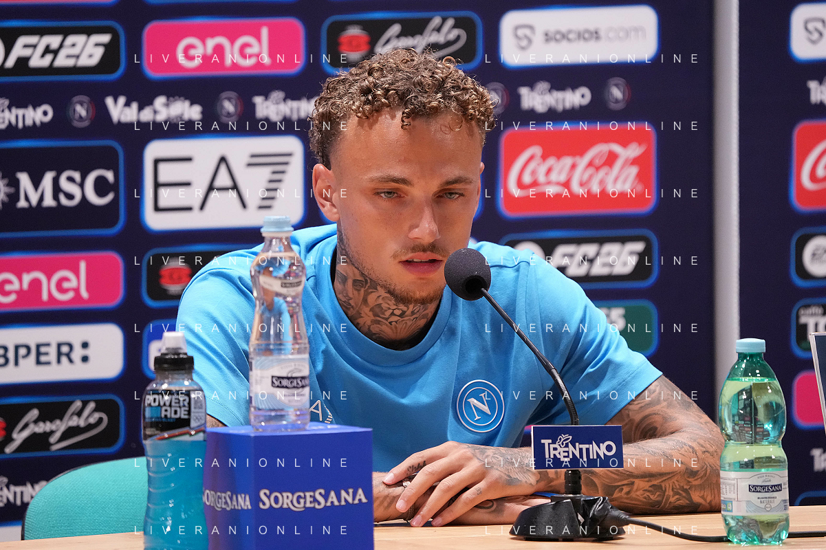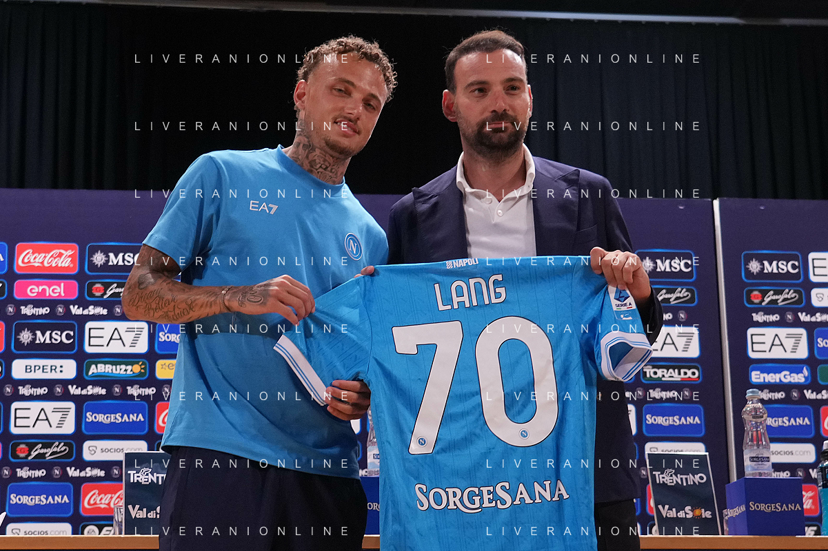 NAPOLI RITIRO PRECAMPIONATO CONFERENZA STAMPA NOA LANG DIMARO 20.07.2025 NELLA FOTO: NOA LANG , MANNA GIOVANNI FOTO MOSCA/AG. ALDO LIVERANI- AGENZIA ALDO LIVERANI SAS