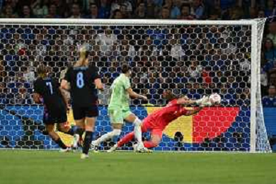 TVRG Inghilterra vs Italia nella foto Laura Giuliani (Italia) para il rigore do Chole Kelly (Inghilterra) che poi segna il gol del 2 a 1 sulla ribattuta Ginevra (SVI) 22-07-2025 Stadio di Ginevra Inghilterra vs Italia Semifinale Campionati Europei femminili UEFA Euro 2025 foto Roberto Garavaglia/Agenzia Aldo Liverani sas