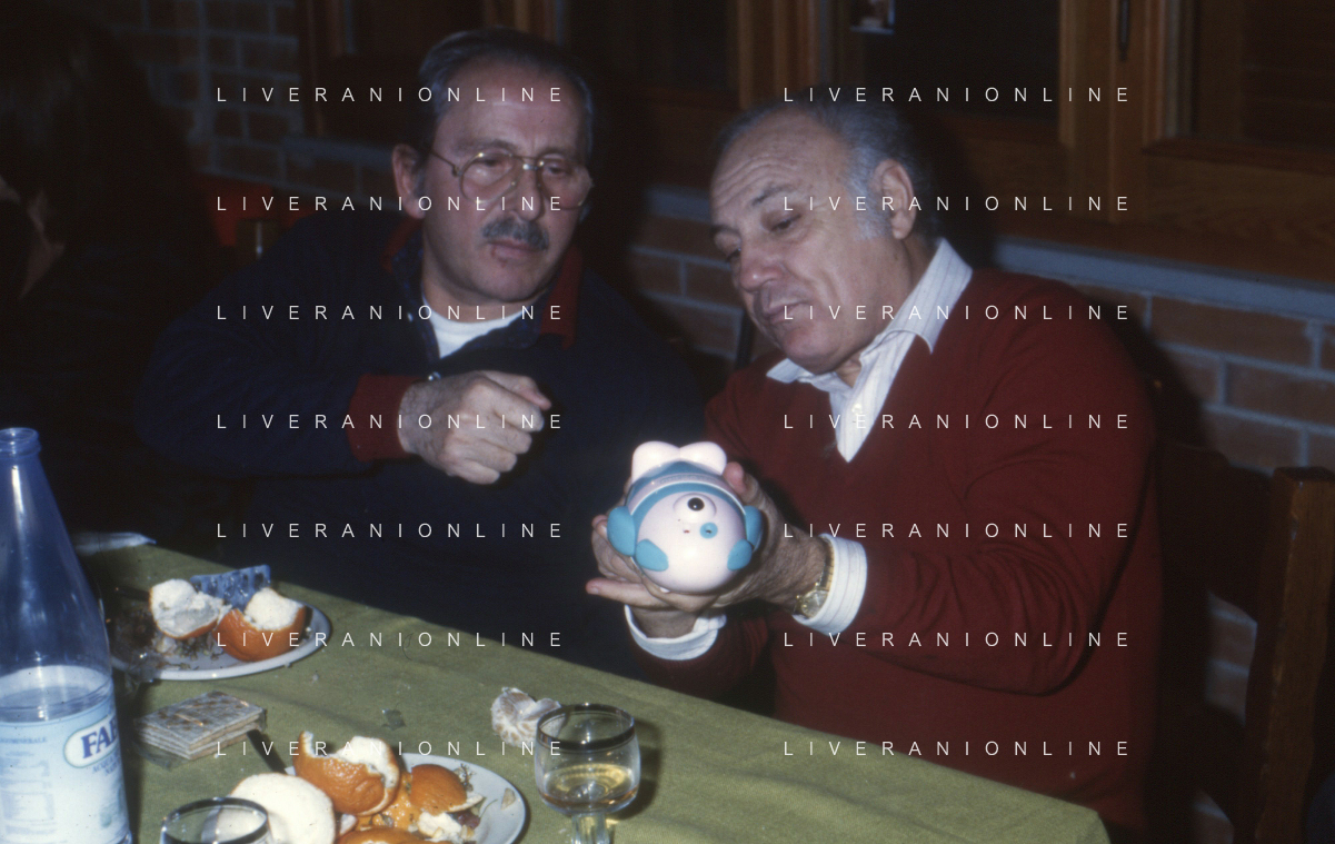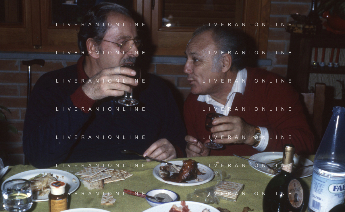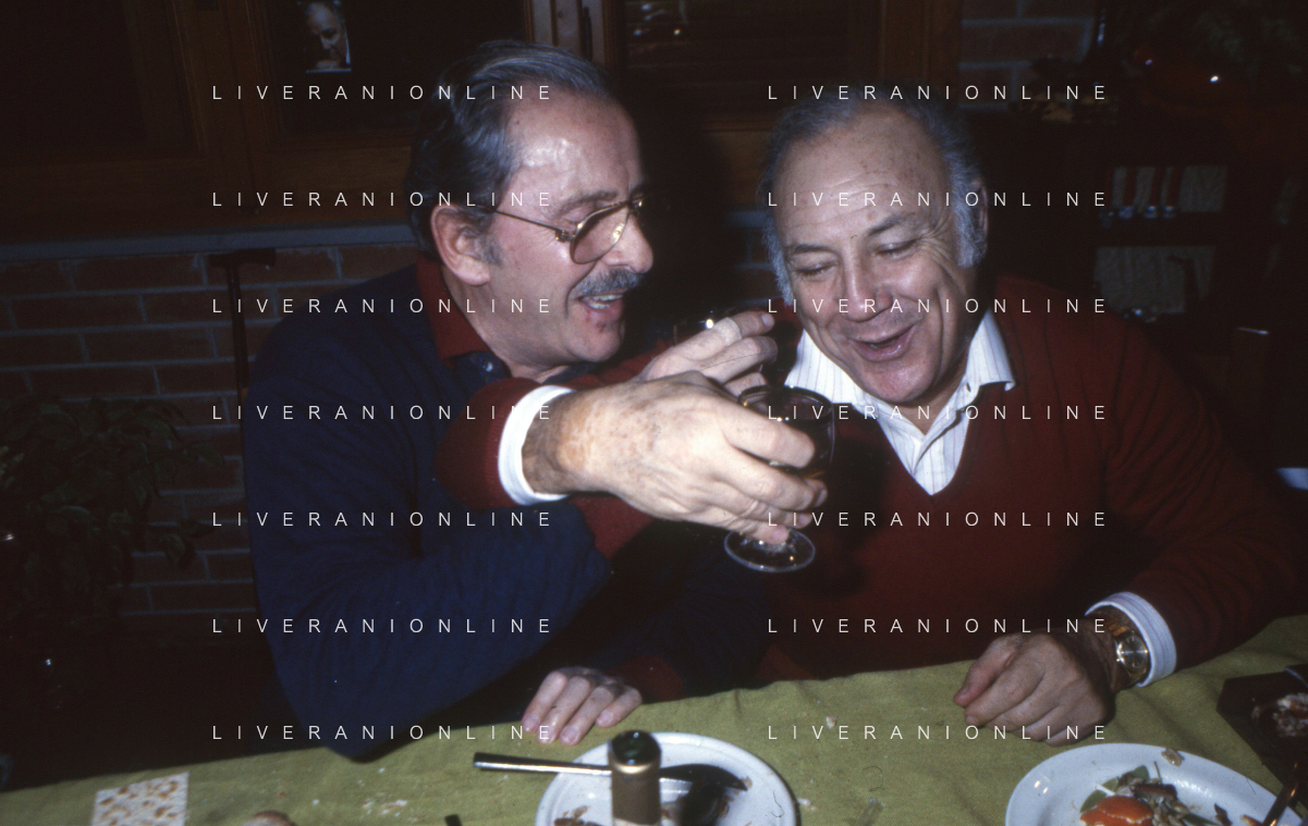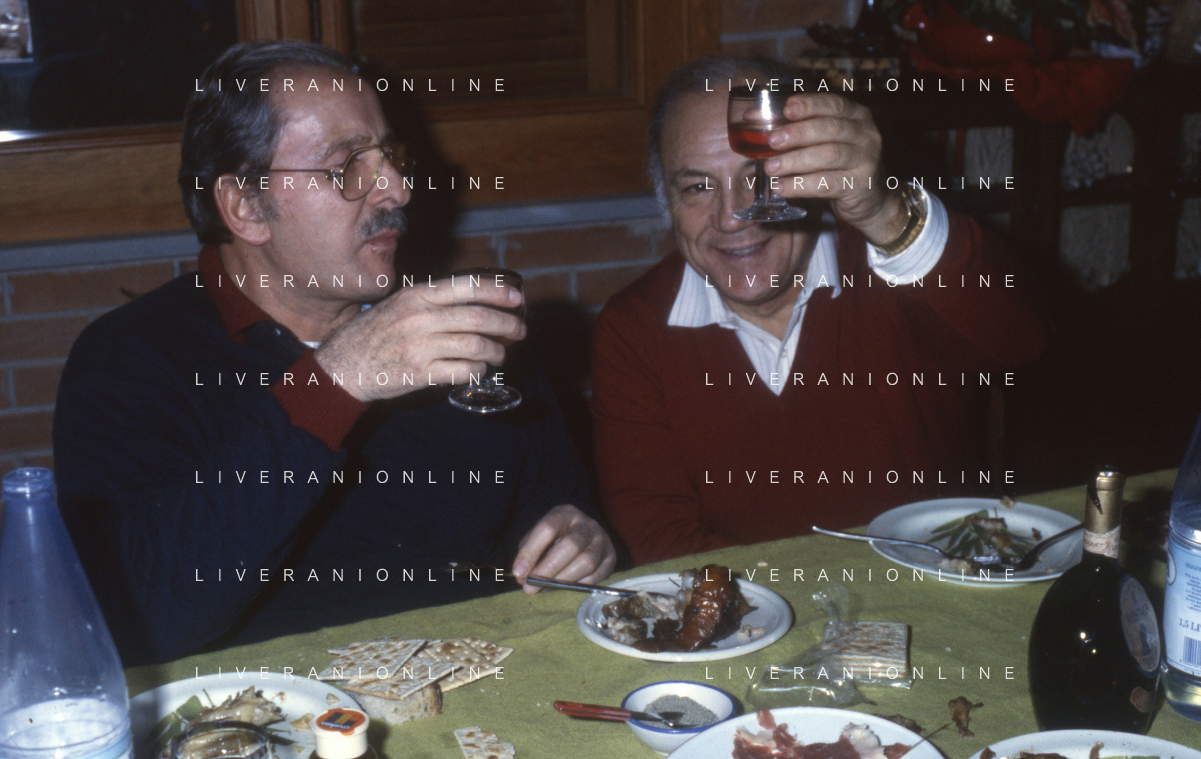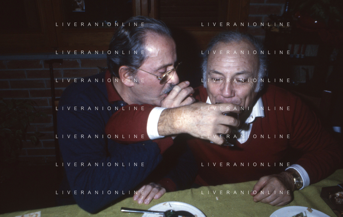 DIAP-RETROSPETTIVA DOMENICO MODUGNO CANTANTE NELLA FOTO DOMENICO MODUGNO CON CLAUDIO VILLA A ROMA NELL'ANNO 1987 FOTO EDGARDO DELLA SCORCIOSA-AG ALDO LIVERANI SAS