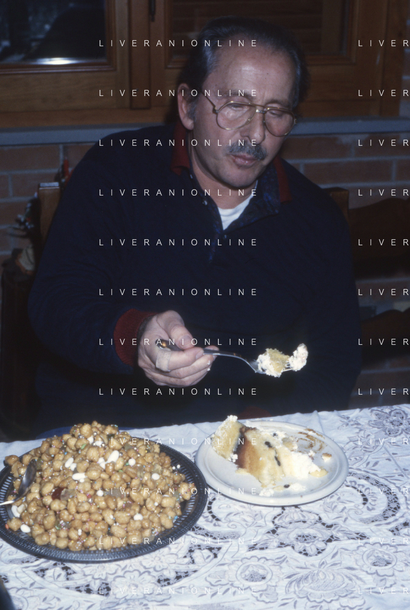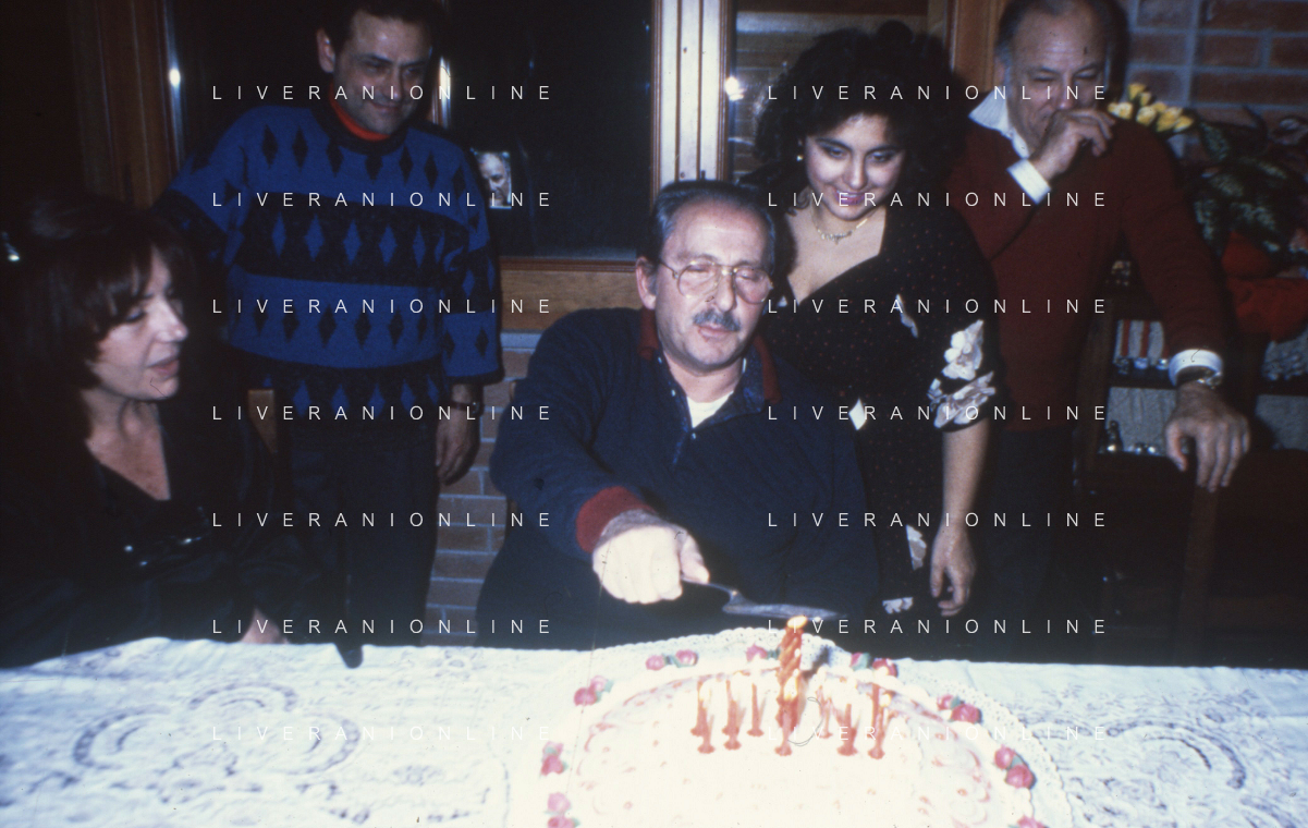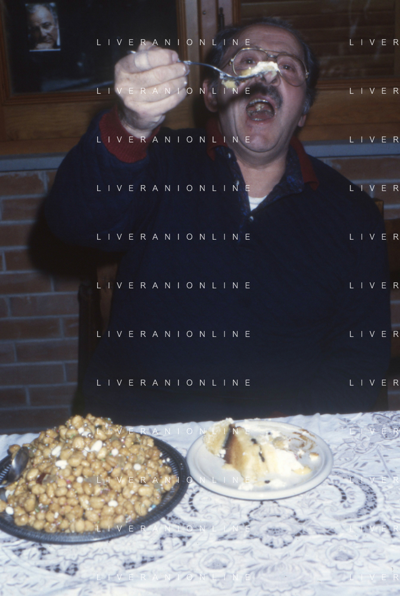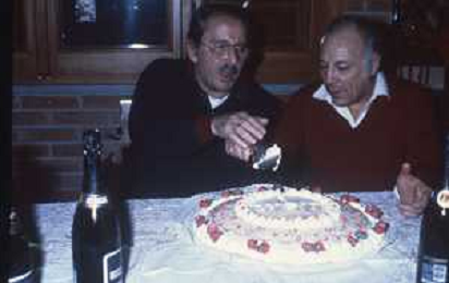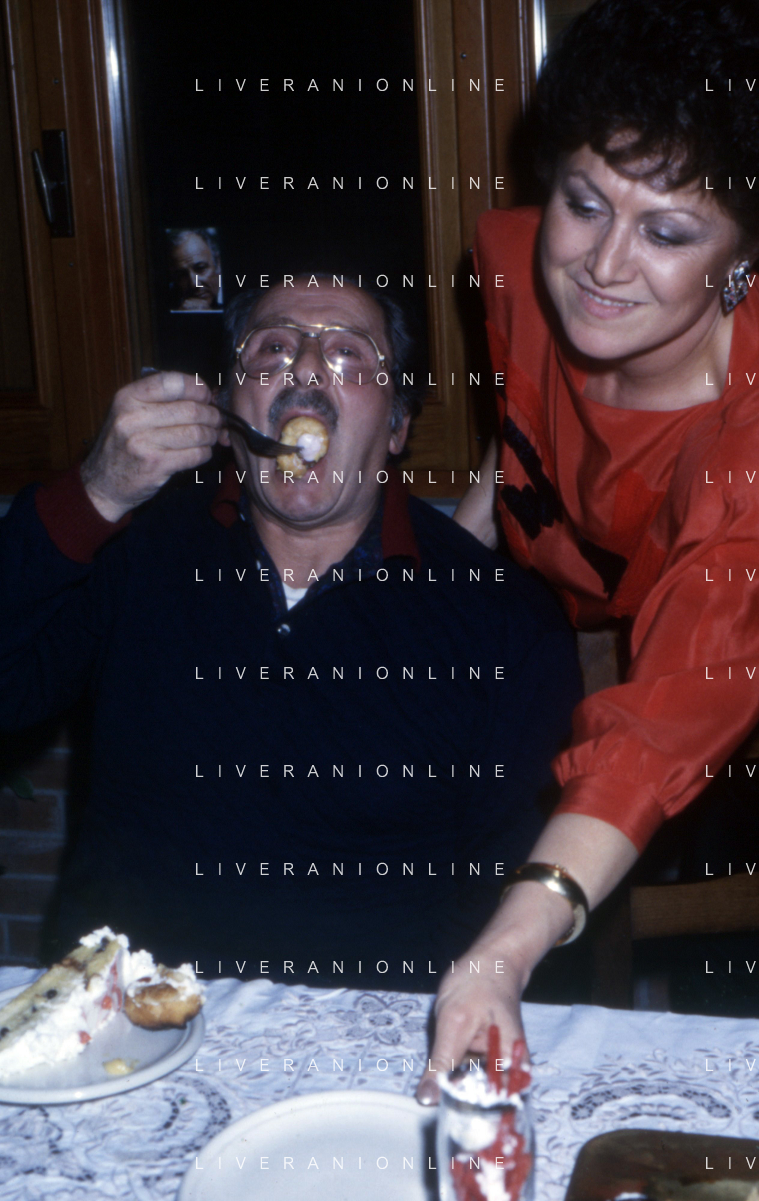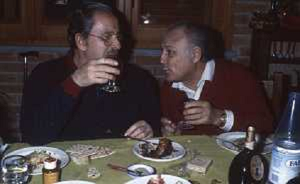 DIAP-RETROSPETTIVA DOMENICO MODUGNO CANTANTE NELLA FOTO DOMENICO MODUGNO CON CLAUDIO VILLA A ROMA NELL'ANNO 1987 FOTO EDGARDO DELLA SCORCIOSA-AG ALDO LIVERANI SAS