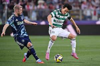 TVRG Ajax vs Celtic nella foto Yang Hyun-jun (Celtic) e Davy Klaassen (Ajax) Como 24-07-2025 Stadio Giuseppe Sinigaglia Semifinale torneo Como Cup - amichevole precampionato foto Roberto Garavaglia/Agenzia Aldo Liverani sas