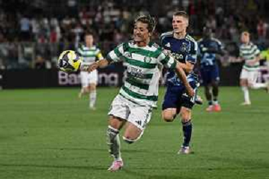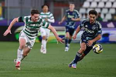 TVRG Ajax vs Celtic nella foto Daizen Maeda (Celtic) e Anton Gaaei (Ajax) Como 24-07-2025 Stadio Giuseppe Sinigaglia Semifinale torneo Como Cup - amichevole precampionato foto Roberto Garavaglia/Agenzia Aldo Liverani sas