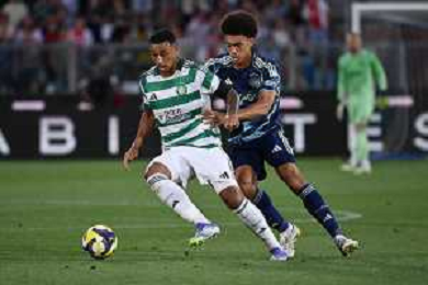 TVRG Ajax vs Celtic nella foto Callum McGregor (Celtic) e Jorthy Mokio (Ajax) Como 24-07-2025 Stadio Giuseppe Sinigaglia Semifinale torneo Como Cup - amichevole precampionato foto Roberto Garavaglia/Agenzia Aldo Liverani sas
