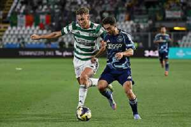TVRG Ajax vs Celtic nella foto Adam Idah (Celtic) e Aaron Bouwman (Ajax) Como 24-07-2025 Stadio Giuseppe Sinigaglia Semifinale torneo Como Cup - amichevole precampionato foto Roberto Garavaglia/Agenzia Aldo Liverani sas