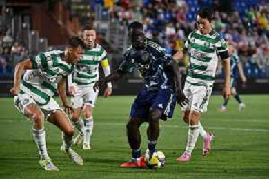 TVRG Ajax vs Celtic nella foto da SX Jorthy Mokio (Ajax), Callum McGregor (Celtic) e Benjamin Nygren (Celtic) Como 24-07-2025 Stadio Giuseppe Sinigaglia Semifinale torneo Como Cup - amichevole precampionato foto Roberto Garavaglia/Agenzia Aldo Liverani sas