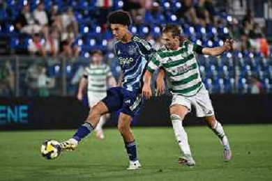 TVRG Ajax vs Celtic nella foto Brian Brobbey (Ajax) e sulla SX Liam Scales (Celtic) Como 24-07-2025 Stadio Giuseppe Sinigaglia Semifinale torneo Como Cup - amichevole precampionato foto Roberto Garavaglia/Agenzia Aldo Liverani sas