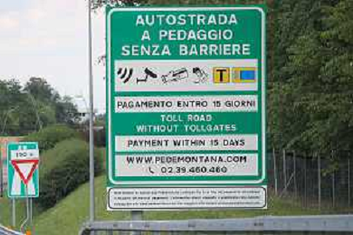 TVRCOR Autostrada Pedeomontana Lombarda (Mozzate - CO) 24-07-2025 nella foto cartello pagamento pedaggio Telepass autostrada senza barriere FOTO ROBERTA CORRADIN-AG ALDO LIVERANI SAS