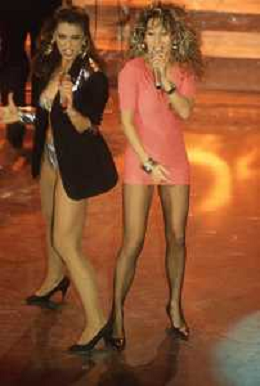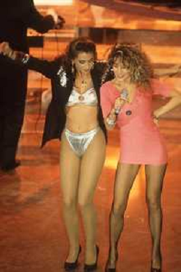 DIAP-RETROSPETTIVA SABRINA SALERNO CANTANTE E ATTRICE NELLA FOTO SABRINA SALERNO CON JO SQUILLO A SANREMO NELL'ANNO 1989 AG ALDO LIVERANI SAS