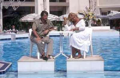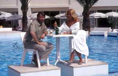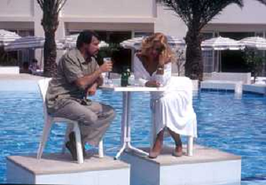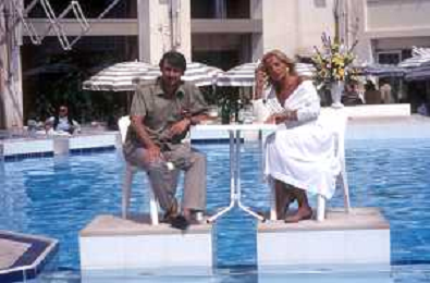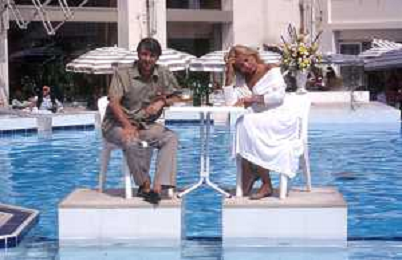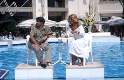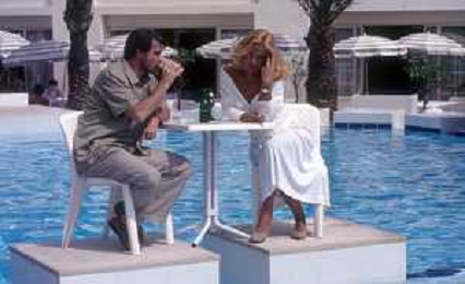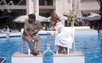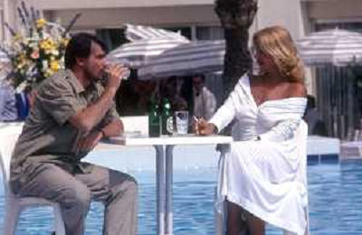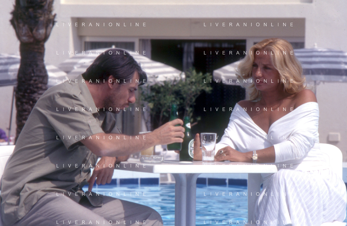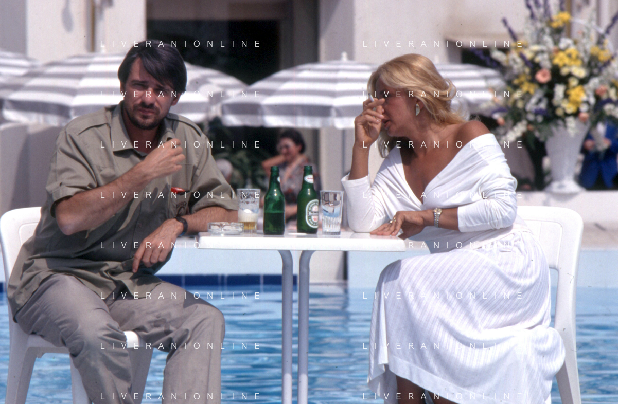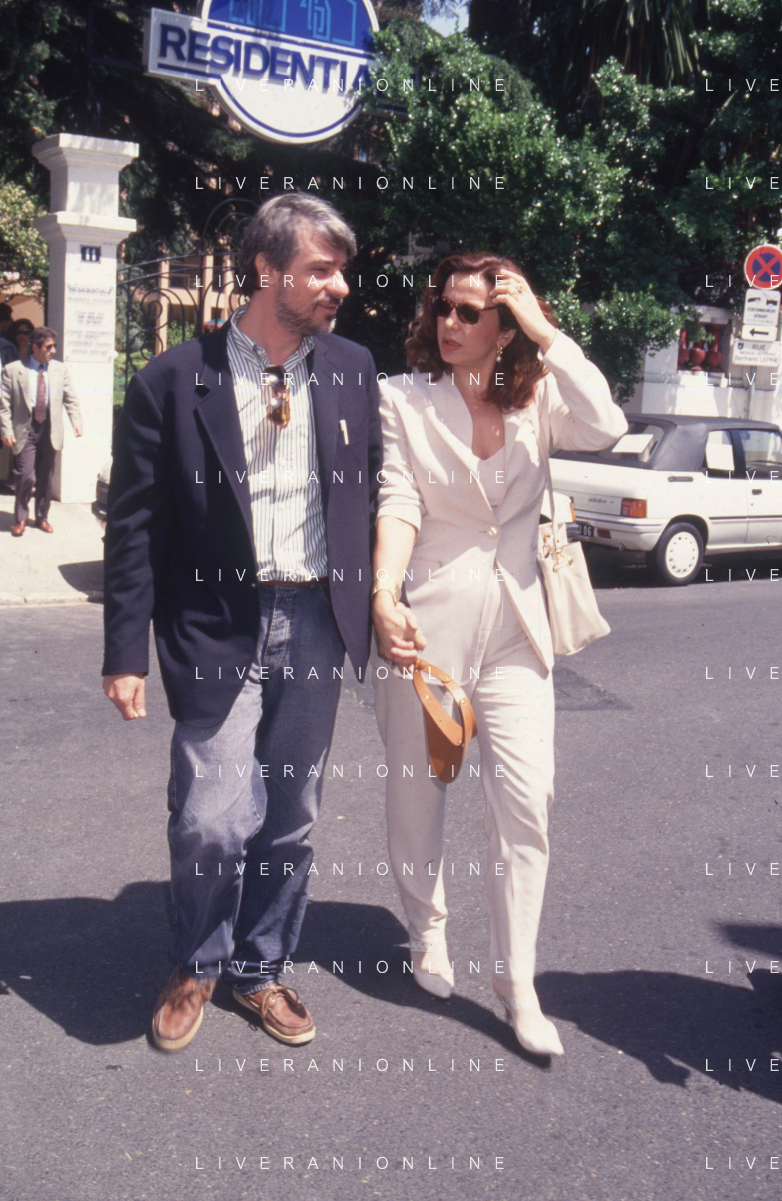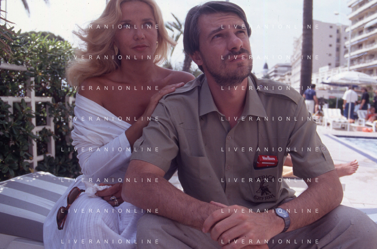 DIAP-RETROSPETTIVA RICKY TOGNAZZI ATTORE NELLA FOTO RICKY TOGNAZZI CON SIMONA IZZO A CANNES NELL'ANNO 1989 AG ALDO LIVERANI SAS