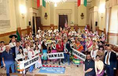 IMOLA 27 07 2025 FOLCLORE 2025 GRUPPI FOLCLORISTICI DEL MESSICO,THAILANDIA E DELLE HAWAII NELLA FOTO GRUPPO DELLE HAWAII IN CONSIGLIO COMUNALE ©SANNA - AGENZIA ALDO LIVERANI SAS