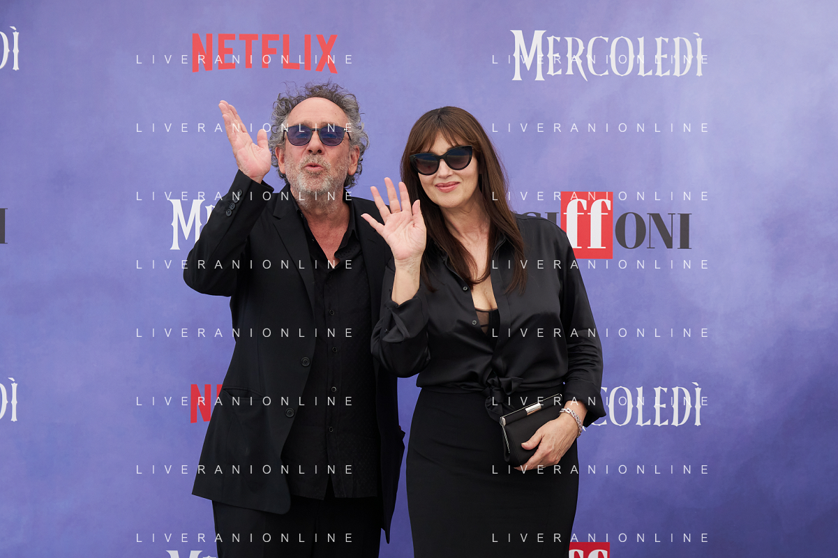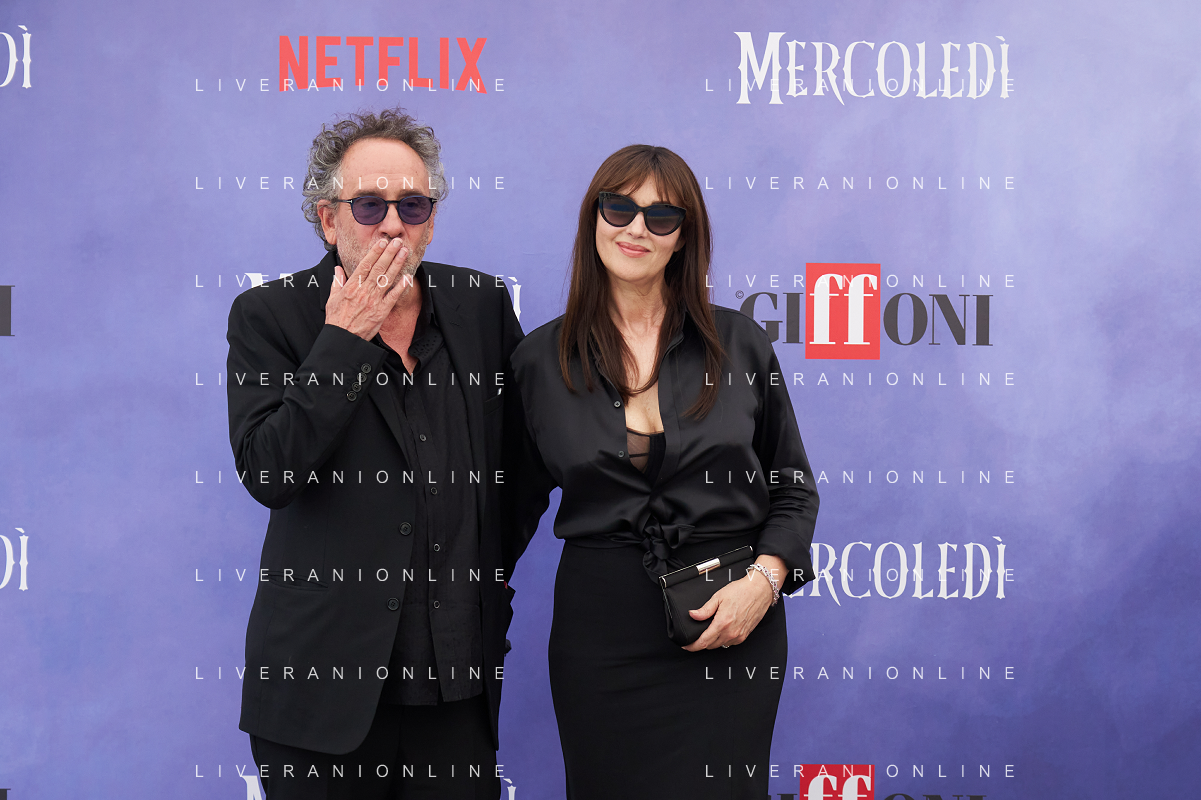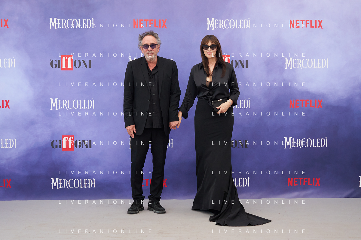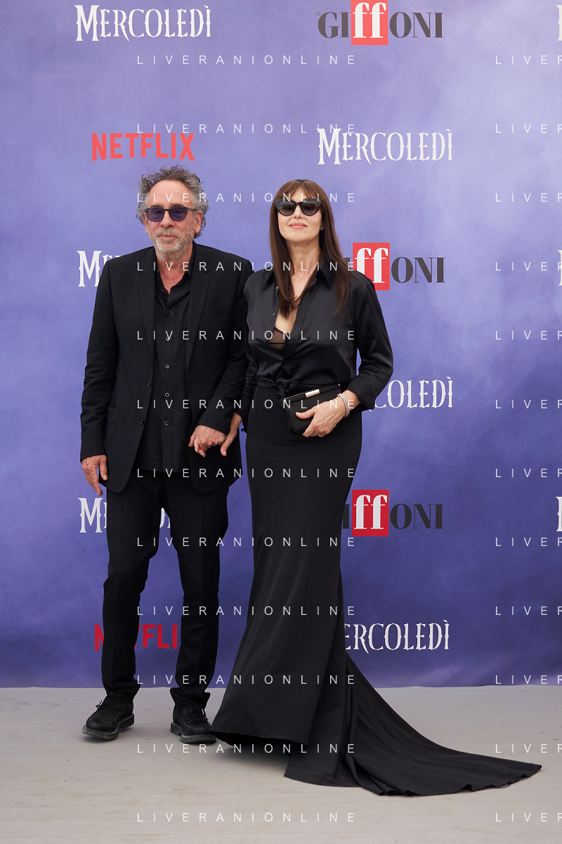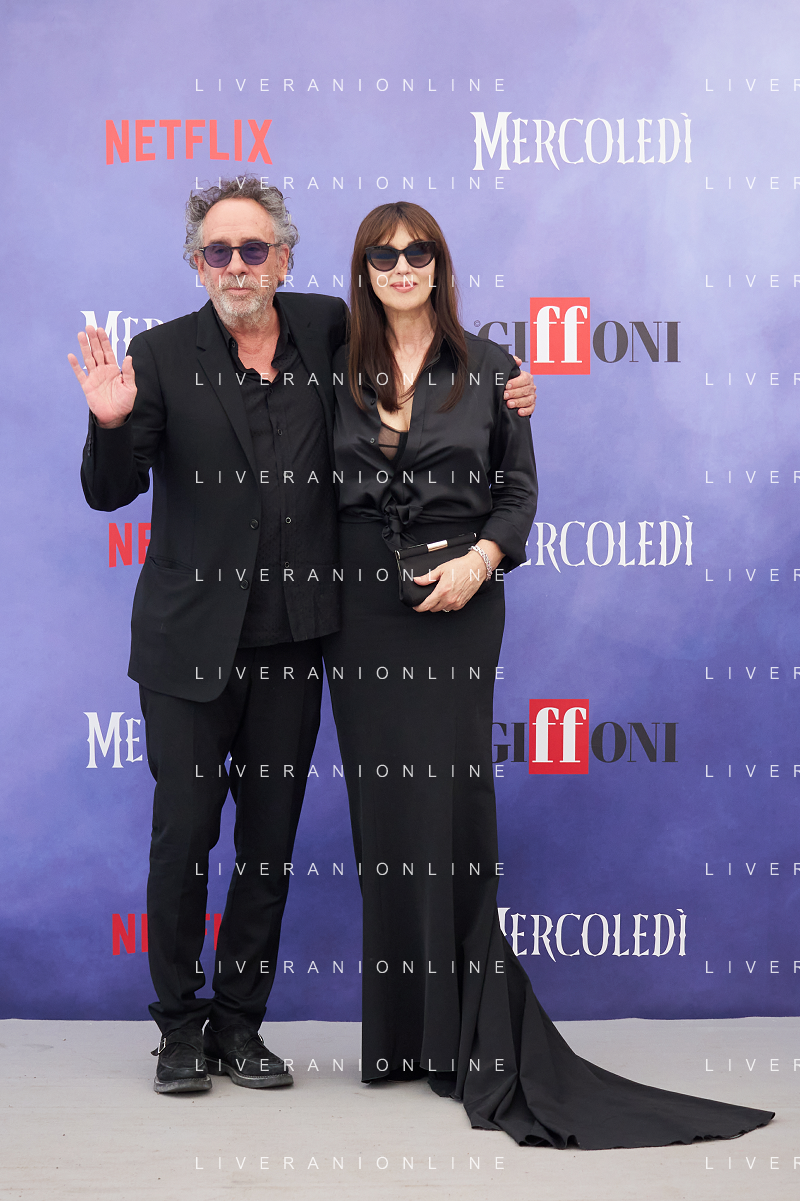 Giffoni 25 Luglio 2025 Giffoni 55 - Photocall ‘Mercoledi’’ Nella Foto: Tim Burton, Monica Bellucci Foto Credit: Andrea Bracaglia- AGENZIA ALDO LIVERANI SAS