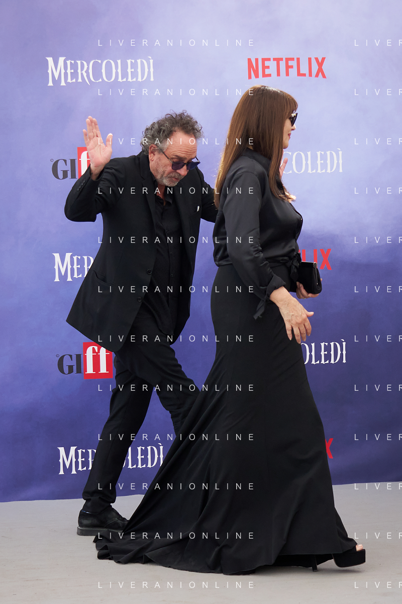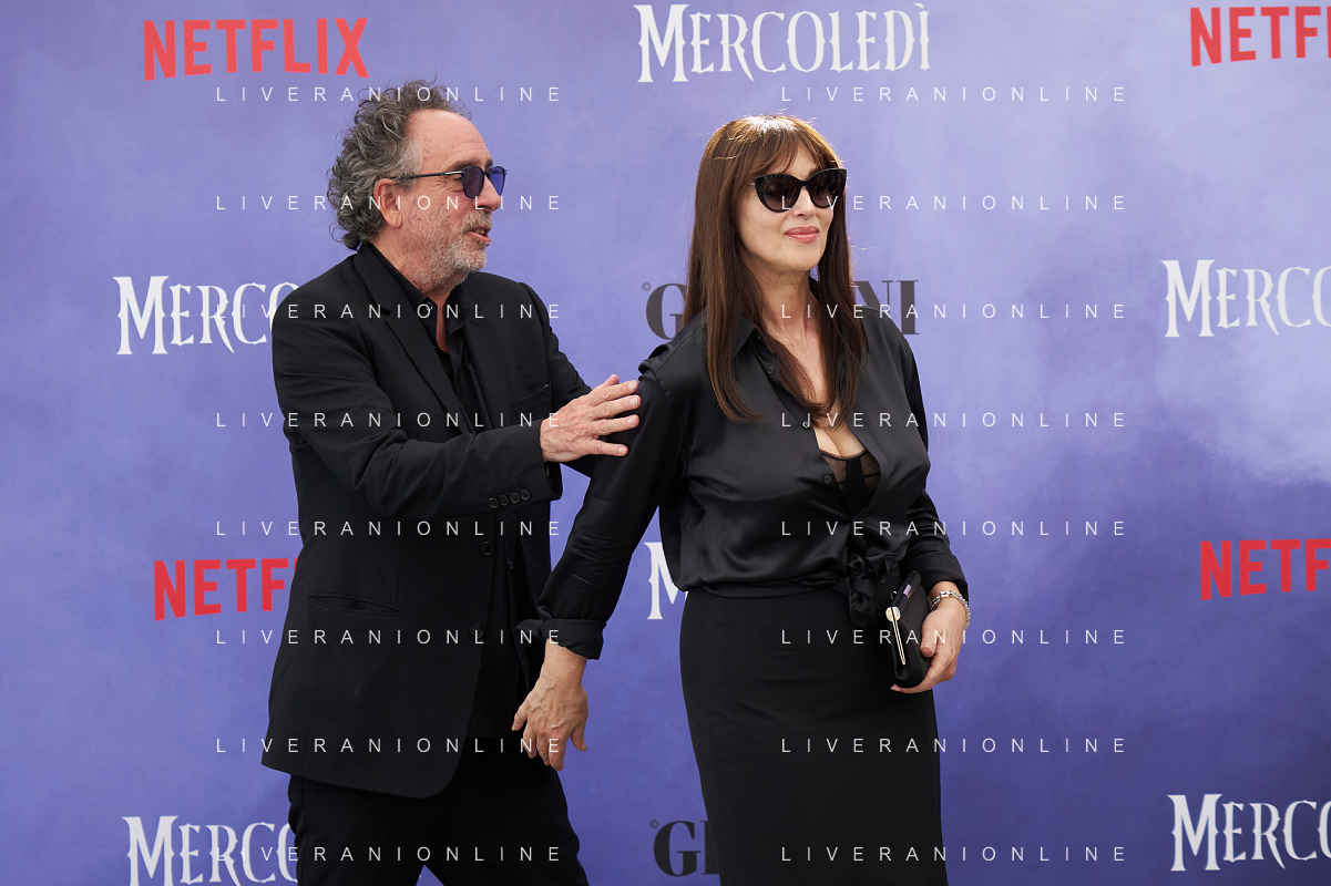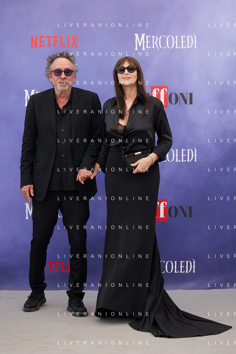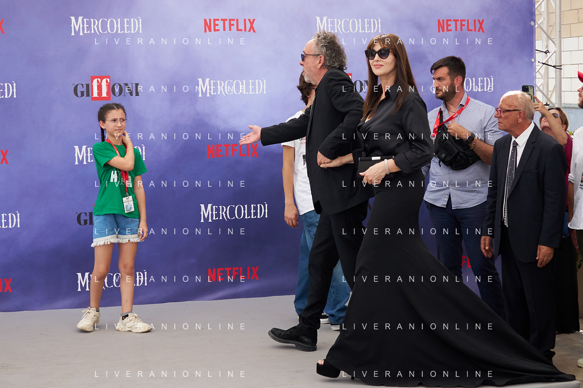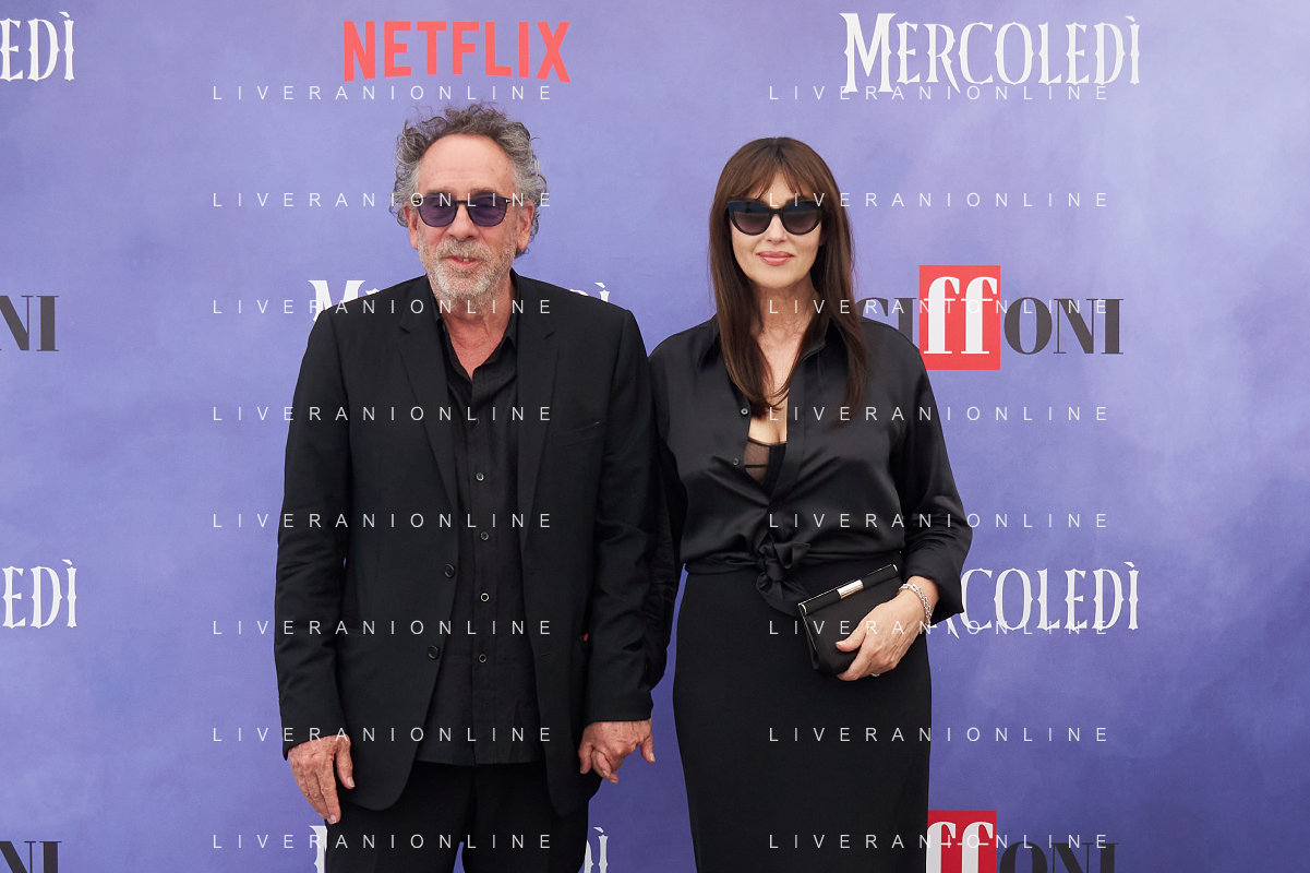 Giffoni 25 Luglio 2025 Giffoni 55 - Photocall ‘Mercoledi’’ Nella Foto: Tim Burton, Monica Bellucci Foto Credit: Andrea Bracaglia- AGENZIA ALDO LIVERANI SAS