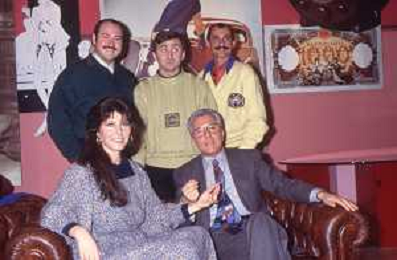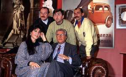 DIAP-RETROSPETTIVA CLAUDIA MORI ATTRICE E CANTANTE NELLA FOTO CLAUDIA MORI CON PINO CARUSO E I GEMELLI RUGGERI NEL PROGRAMMA TELEVISIVO “ DUDU DUDU' “ NELL'ANNO 1990 AG ALDO LIVERANI SAS