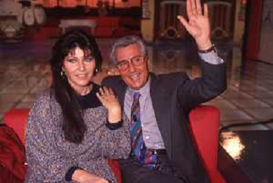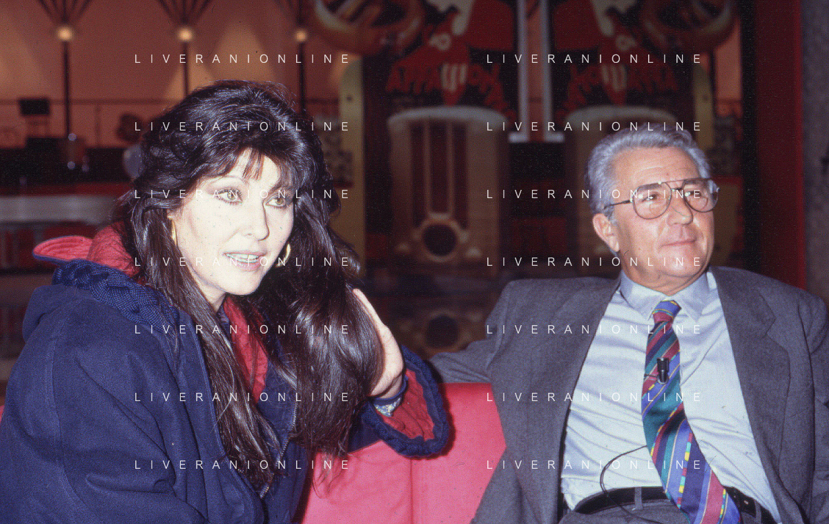 DIAP-RETROSPETTIVA CLAUDIA MORI ATTRICE E CANTANTE NELLA FOTO CLAUDIA MORI CON PINO CARUSO NEL PROGRAMMA TELEVISIVO “ DUDU DUDU' “ NELL'ANNO 1990 AG ALDO LIVERANI SAS