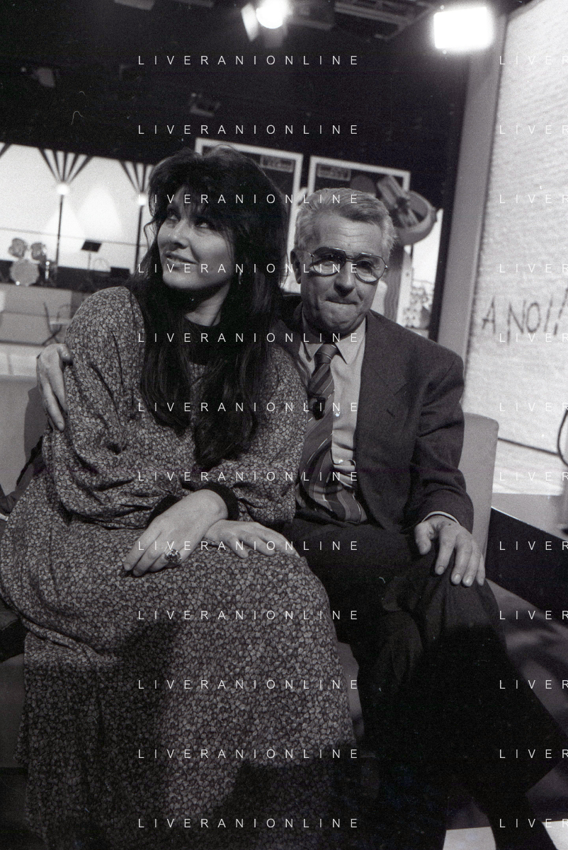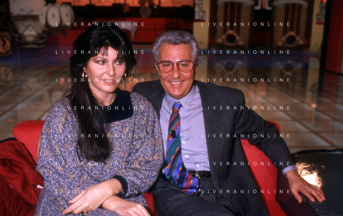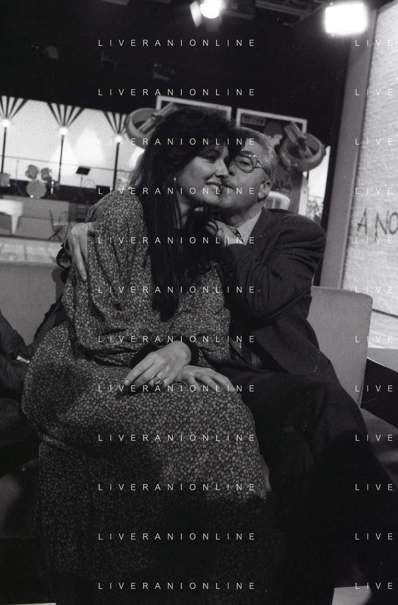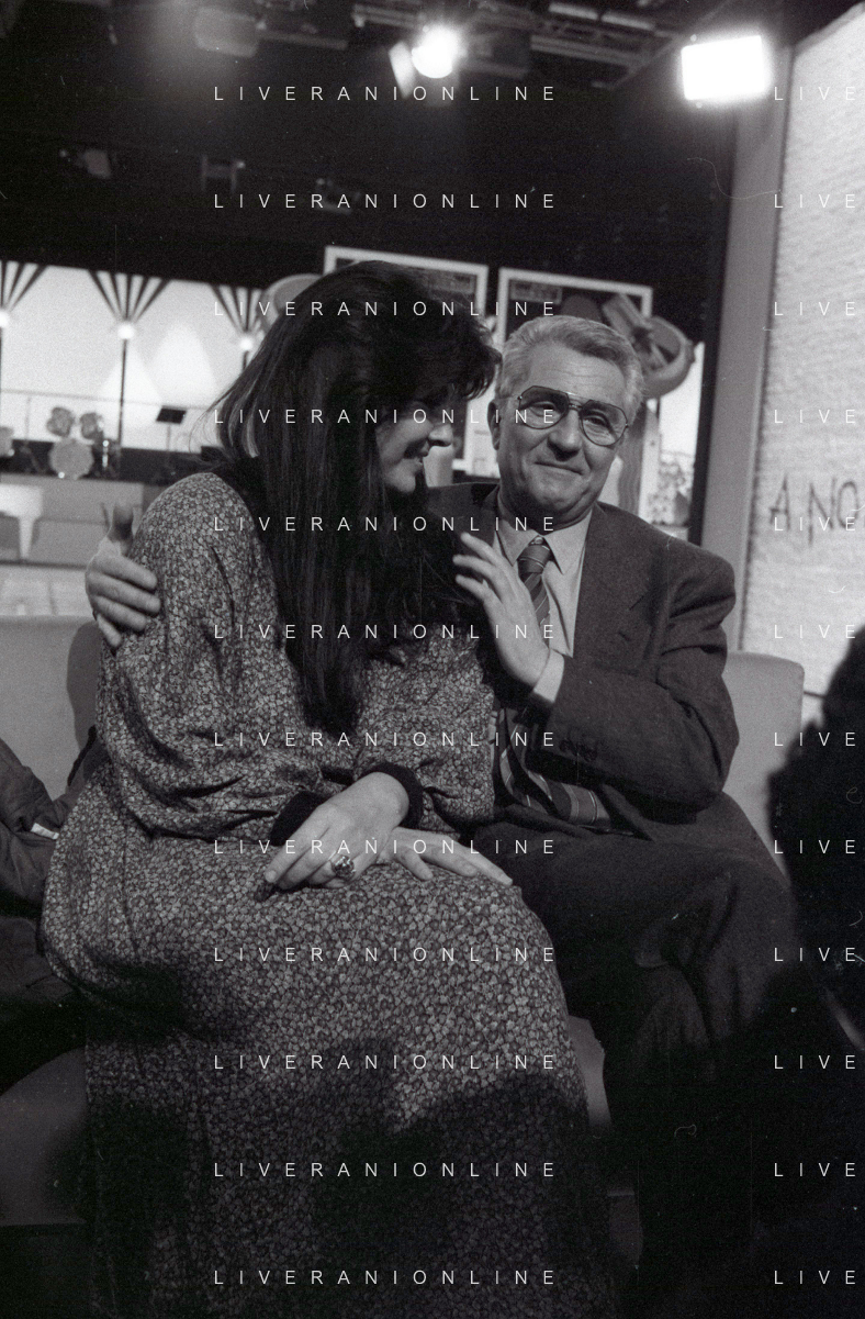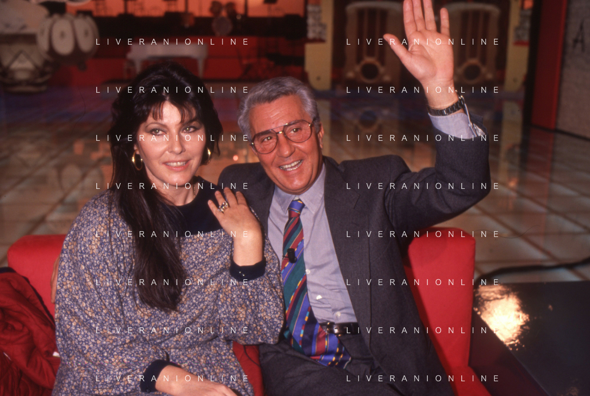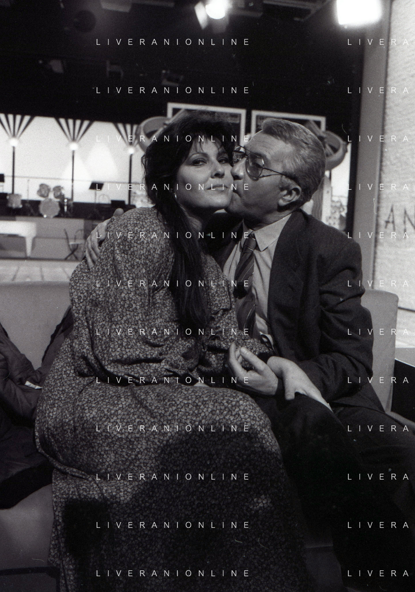 NEG-RETROSPETTIVA CLAUDIA MORI ATTRICE E CANTANTE NELLA FOTO CLAUDIA MORI CON PINO CARUSO NEL PROGRAMMA TELEVISIVO “ DUDU DUDU' “ NELL'ANNO 1990 AG ALDO LIVERANI SAS