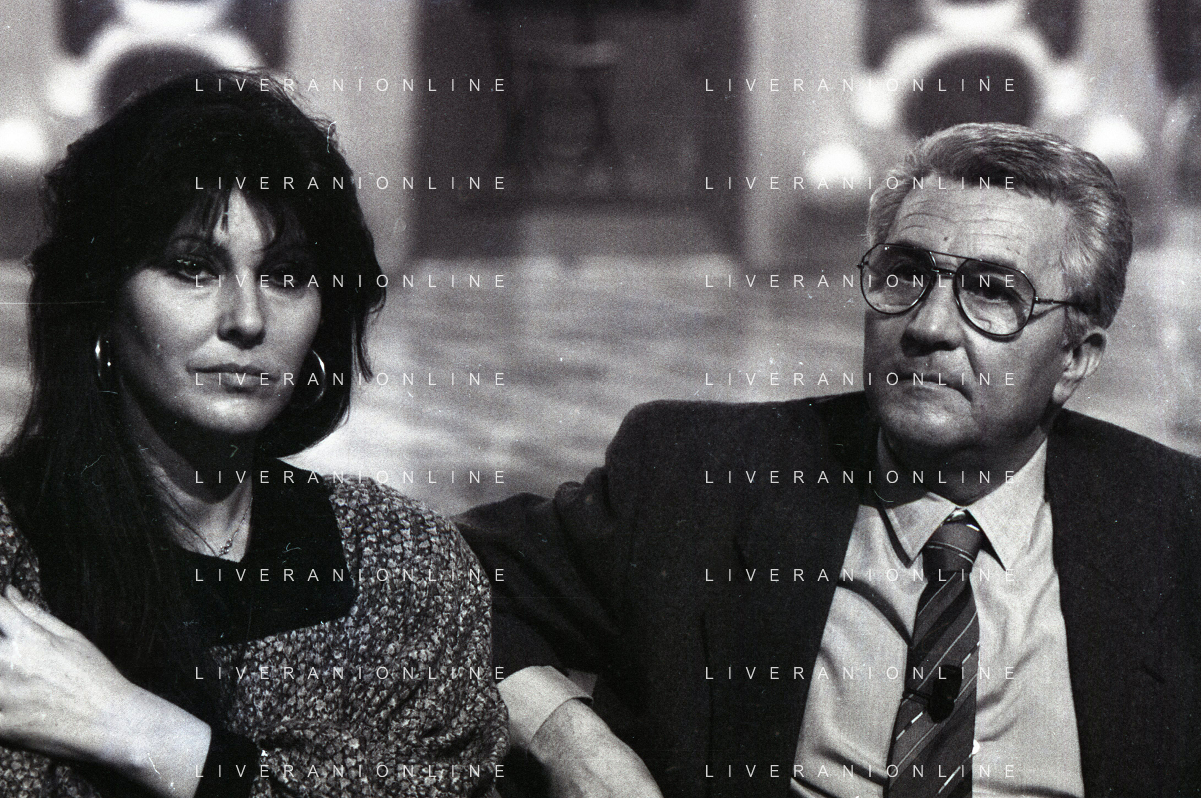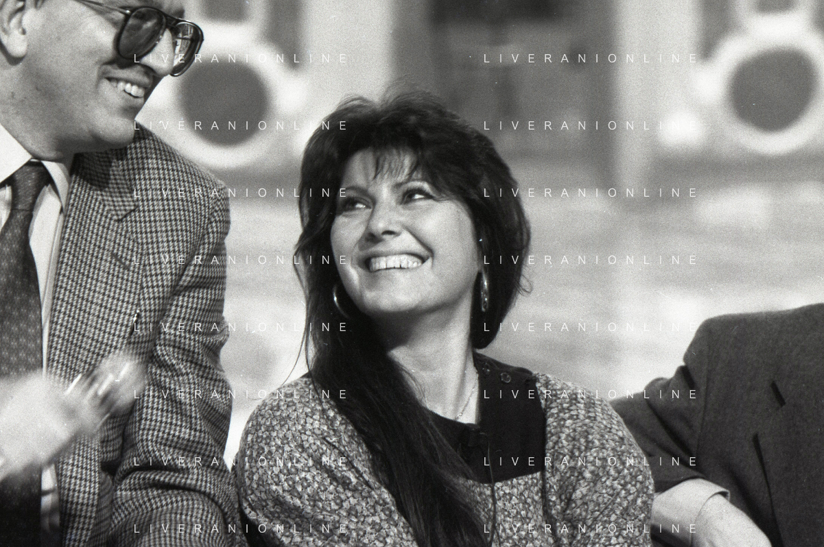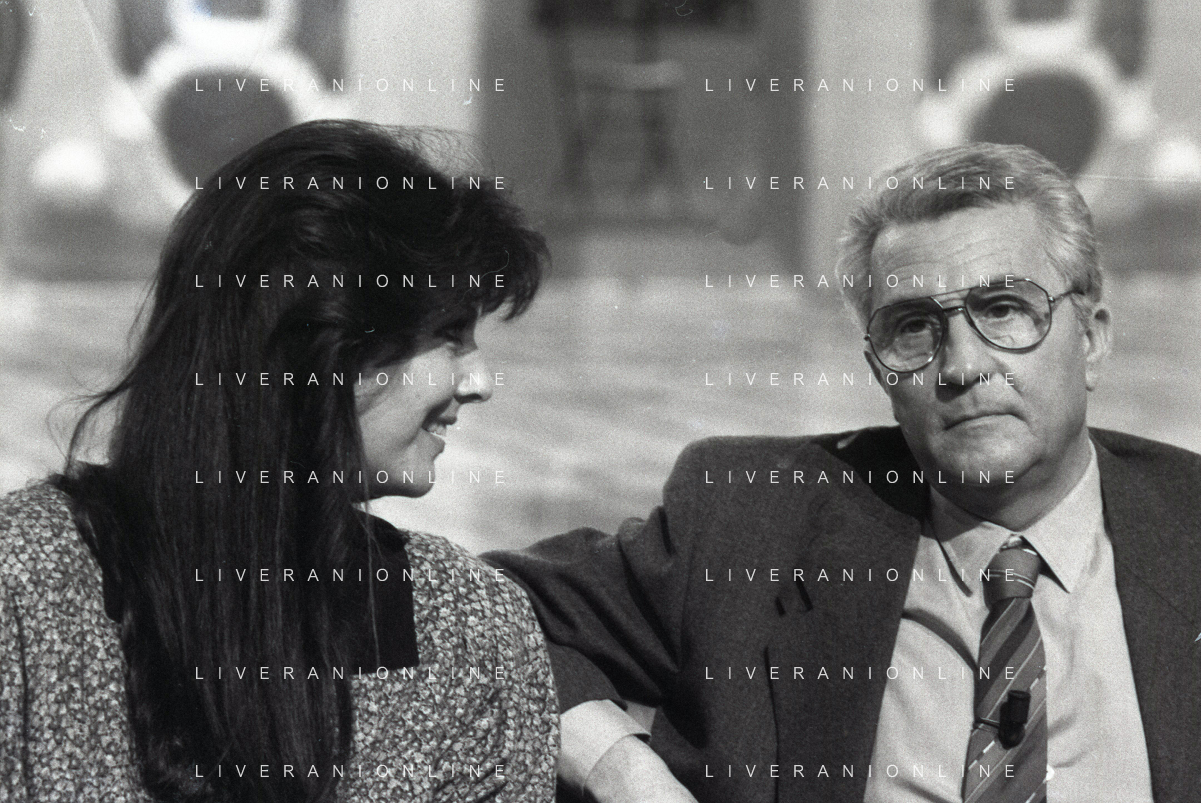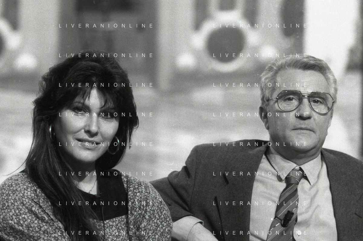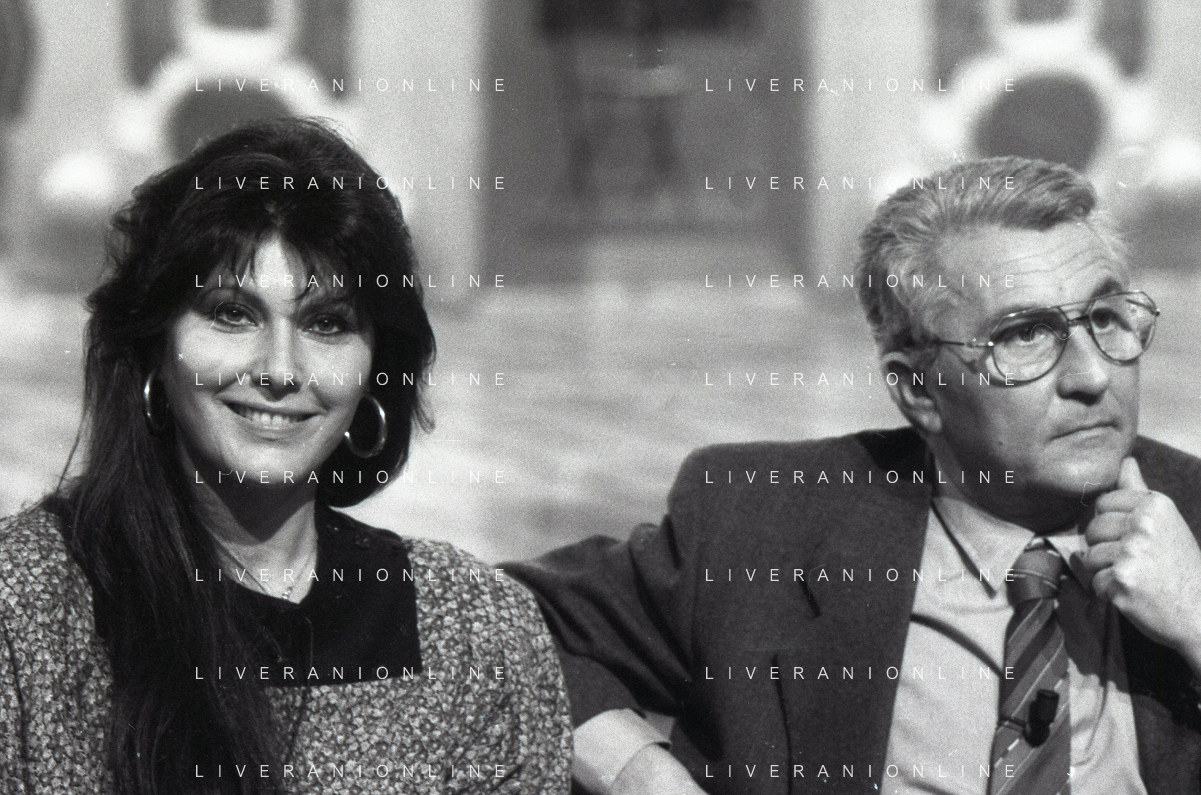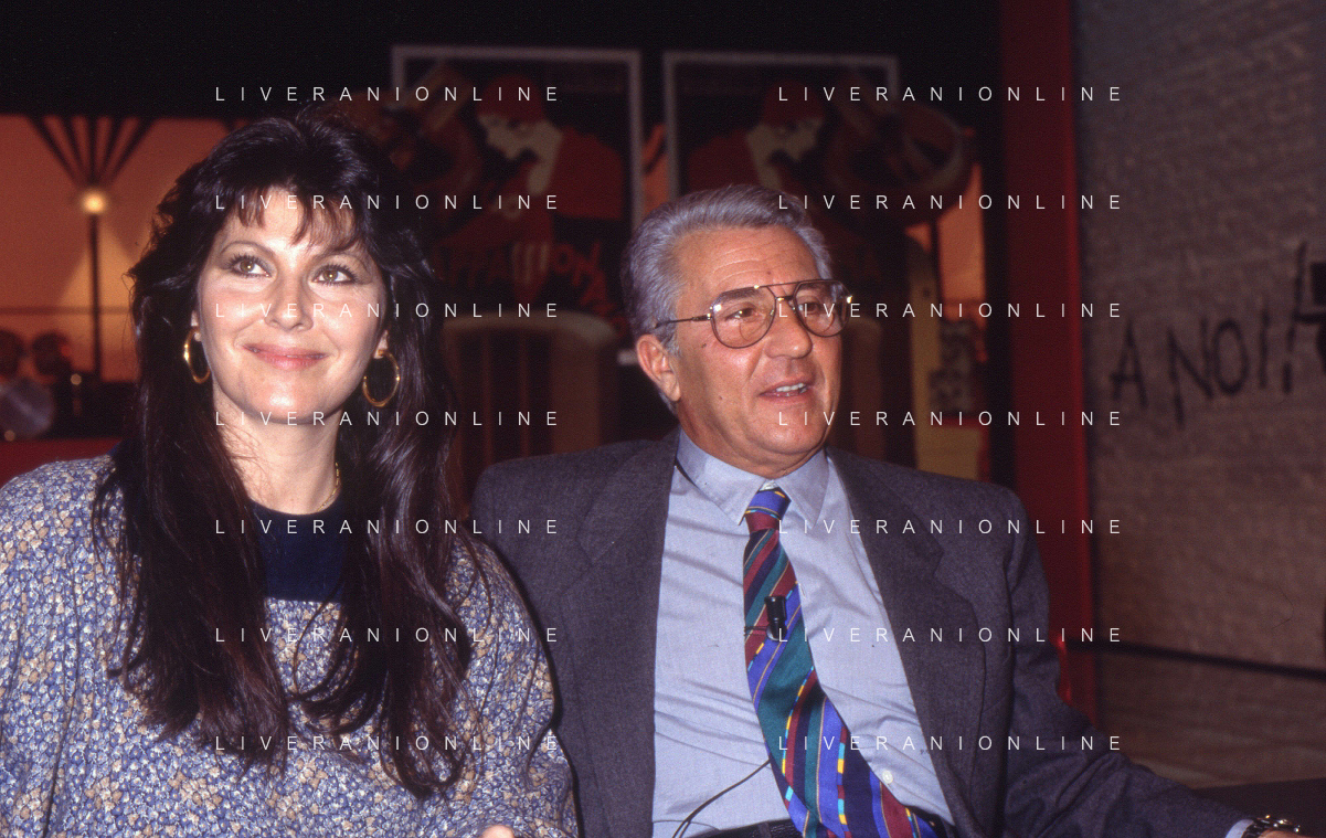 NEG-RETROSPETTIVA CLAUDIA MORI ATTRICE E CANTANTE NELLA FOTO CLAUDIA MORI CON PINO CARUSO NEL PROGRAMMA TELEVISIVO “ DUDU DUDU' “ NELL'ANNO 1990 AG ALDO LIVERANI SAS