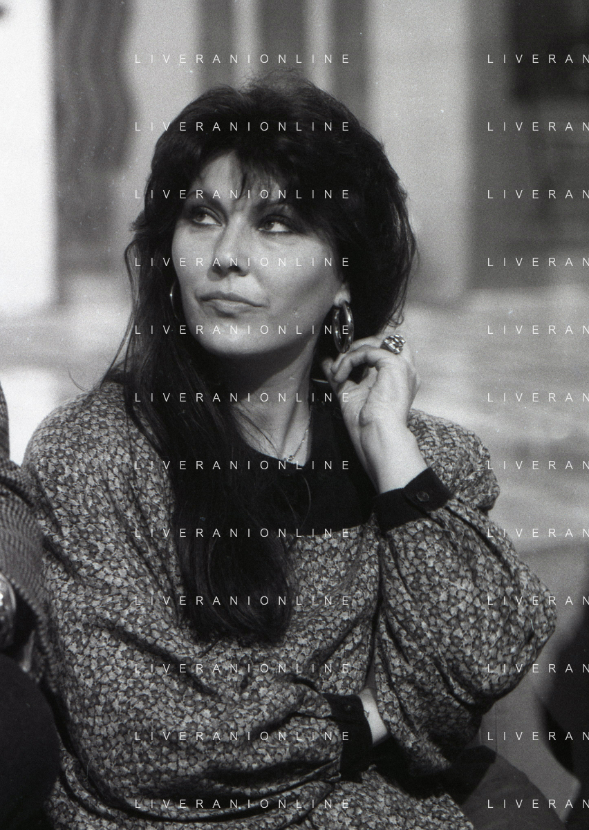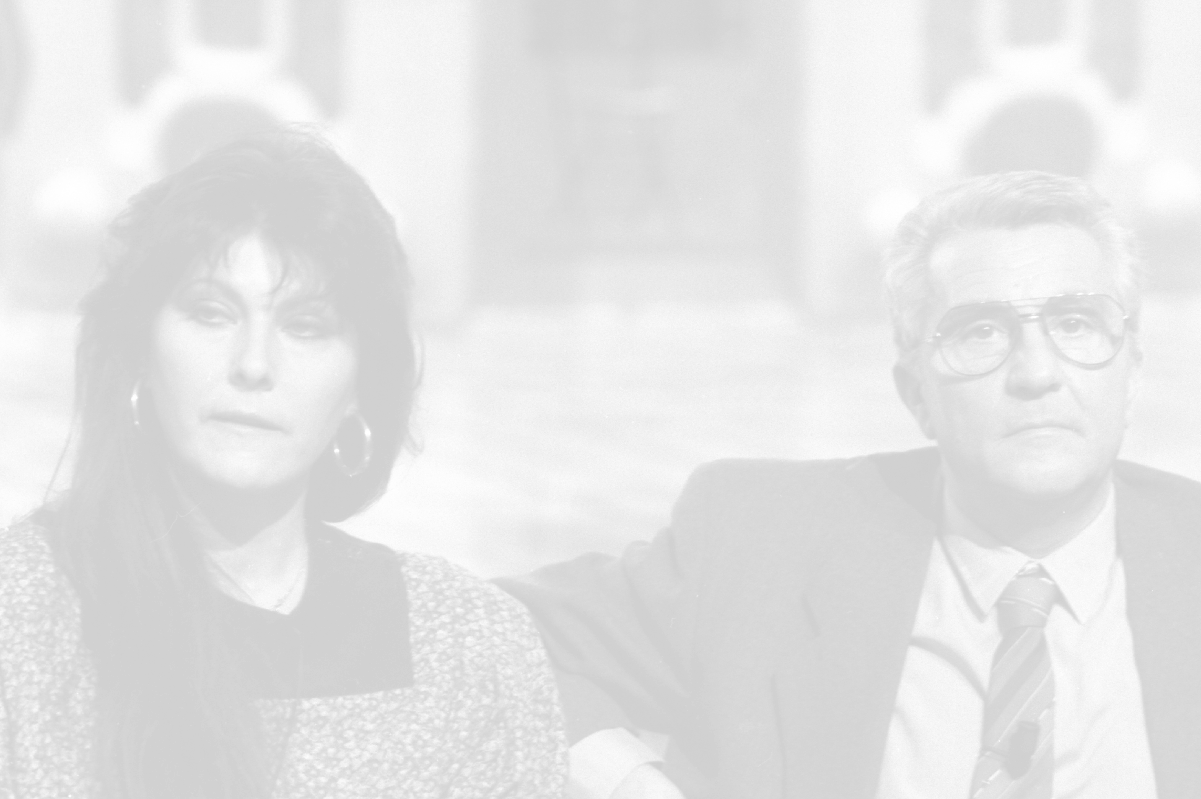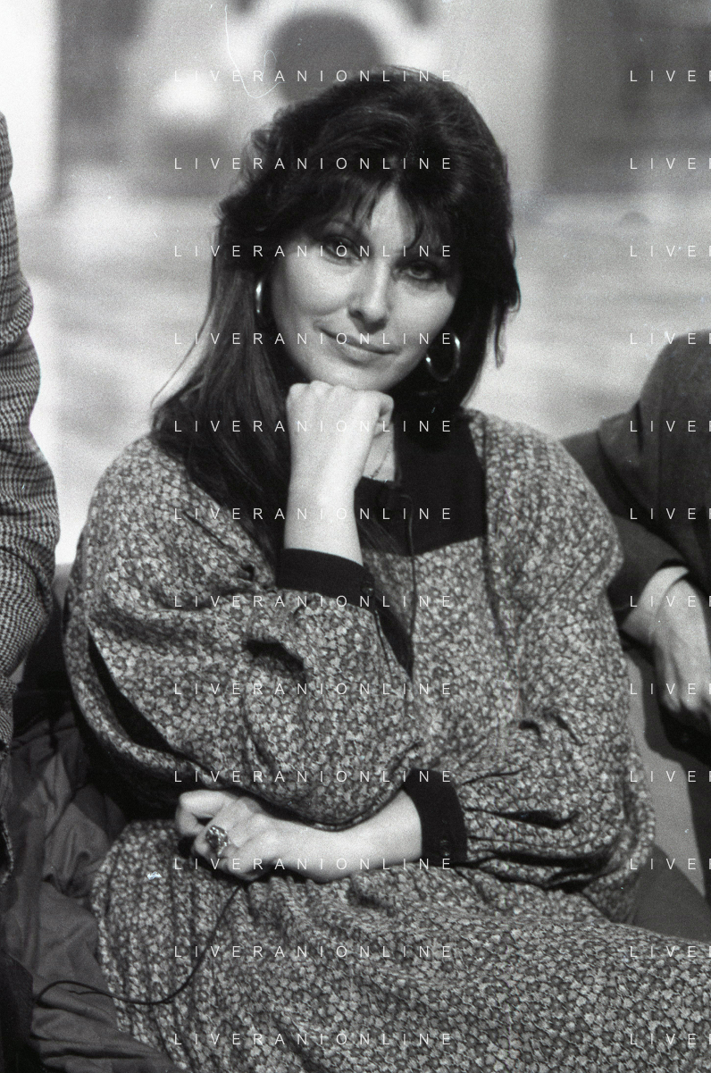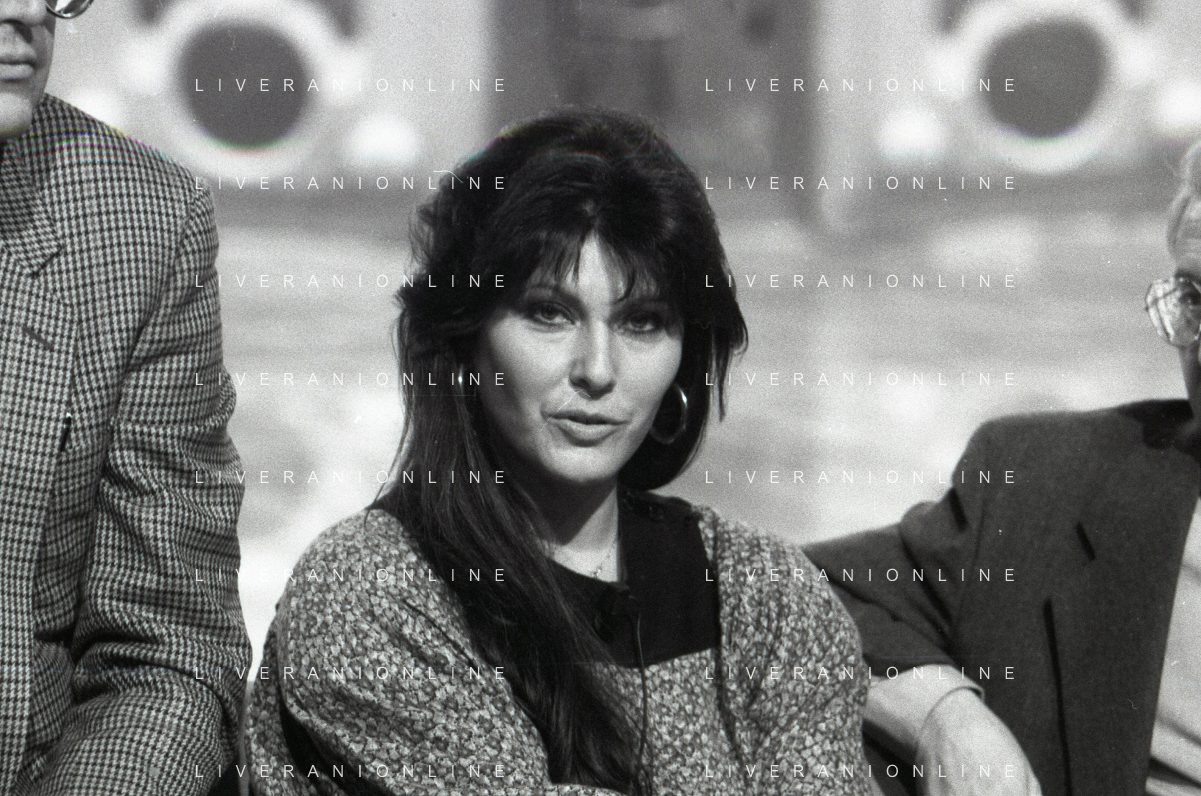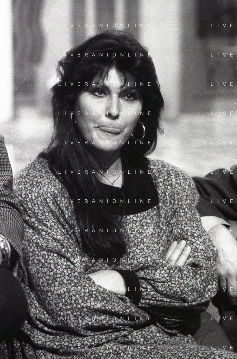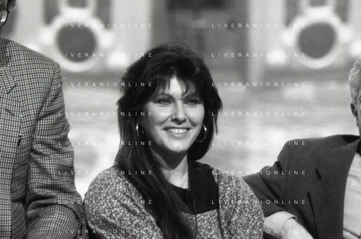NEG-RETROSPETTIVA CLAUDIA MORI ATTRICE E CANTANTE NELLA FOTO CLAUDIA MORI CON PINO CARUSO NEL PROGRAMMA TELEVISIVO “ DUDU DUDU' “ NELL'ANNO 1990 AG ALDO LIVERANI SAS