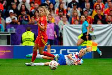 TVEM July 27, 2025 Basel, Switzerland - England vs Spain - Women's UEFA Euro 2025 Final match - St. Jakob-Park. In the pic: Athenea of Spain in action against Alex Greenwood of England ©Federico Gaetano - AGENZIA ALDO LIVERANI SAS