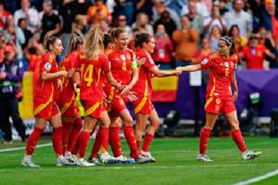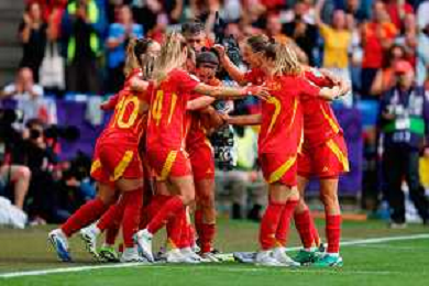 TVEM July 27, 2025 Basel, Switzerland - England vs Spain - Women's UEFA Euro 2025 Final match - St. Jakob-Park. In the pic: Mariona Caldentey of Spain celebrates after scoring a goal with teammates ©TVEM Emmanuele Mastrodonato - AGENZIA ALDO LIVERANI SAS