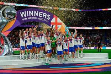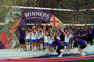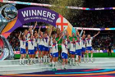TVEM July 27, 2025 Basel, Switzerland - England vs Spain - Women's UEFA Euro 2025 Final match - St. Jakob-Park. In the pic: Match winner England celebrates lifting trophy at St. Jakob‑Park, Basel ©TVEM Emmanuele Mastrodonato - AGENZIA ALDO LIVERANI SAS