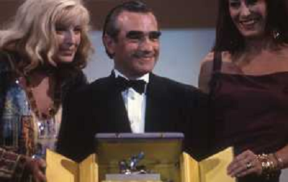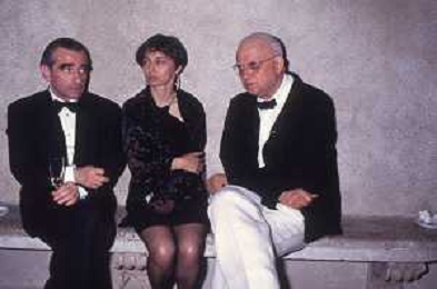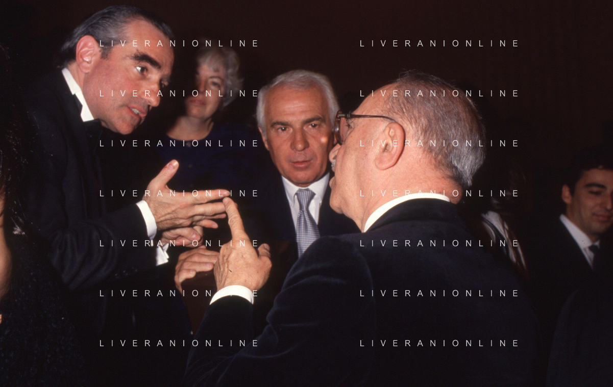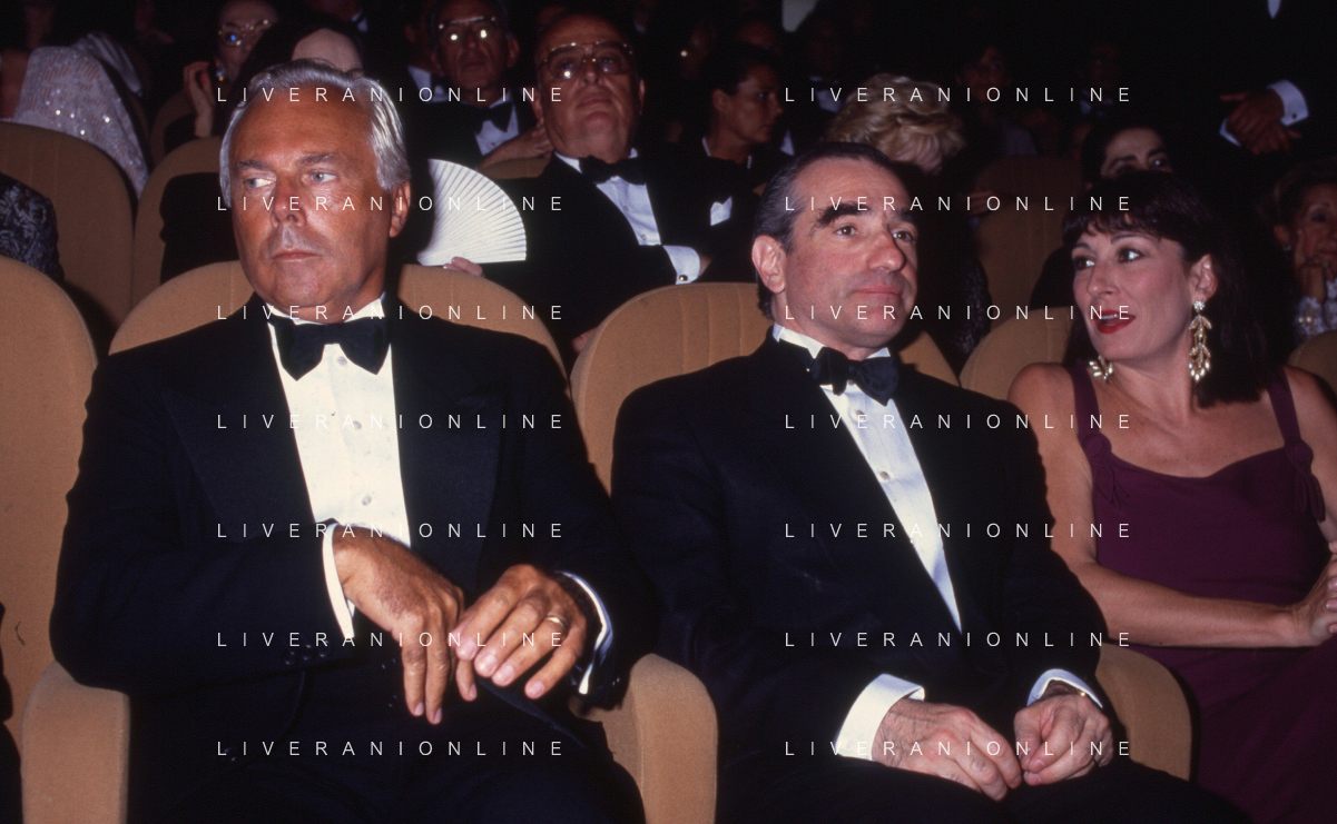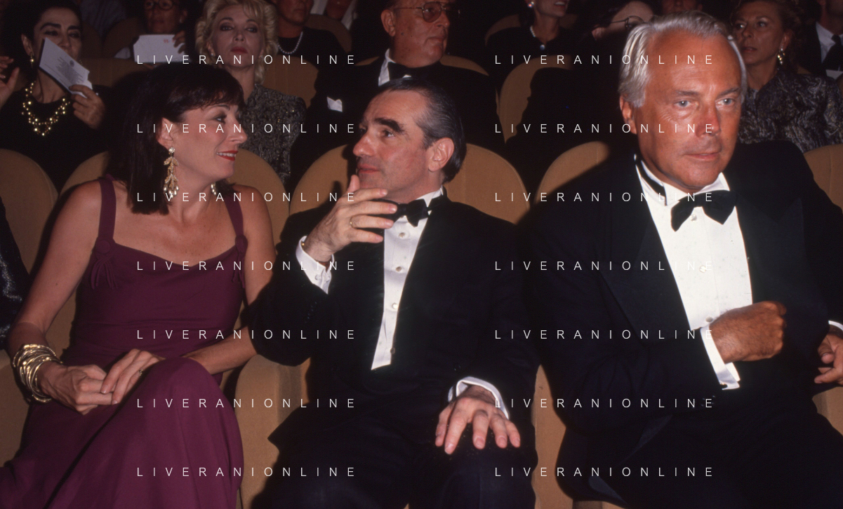 DIAP-RETROSPETTIVA MARTIN SCORSESE REGISTA NELLA FOTO MARTIN SCORSESE CON GIORGIO ARMANI E ANGELICA HUSTON A VENEZIA NELL'ANNO 1990 AG ALDO LIVERANI SAS