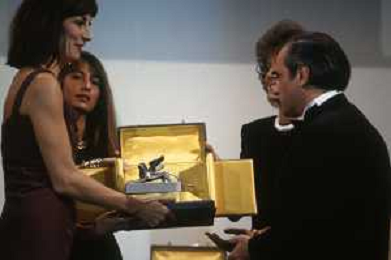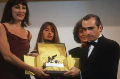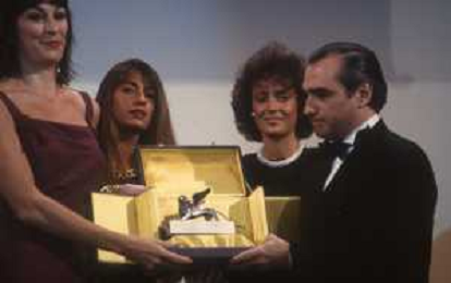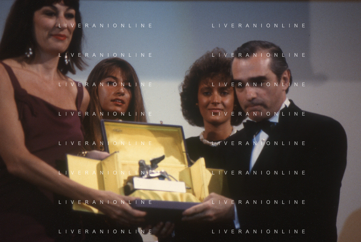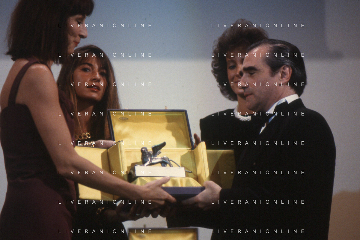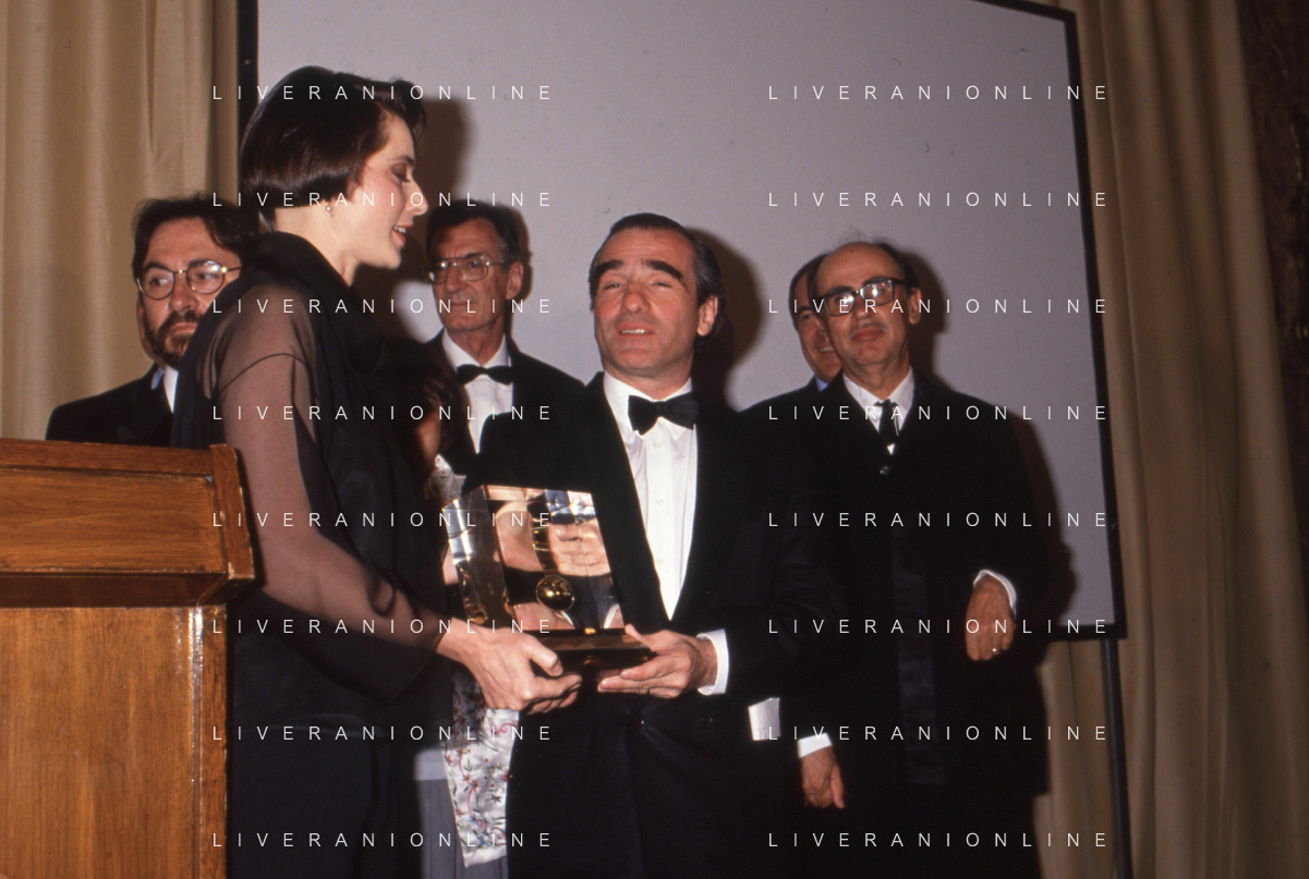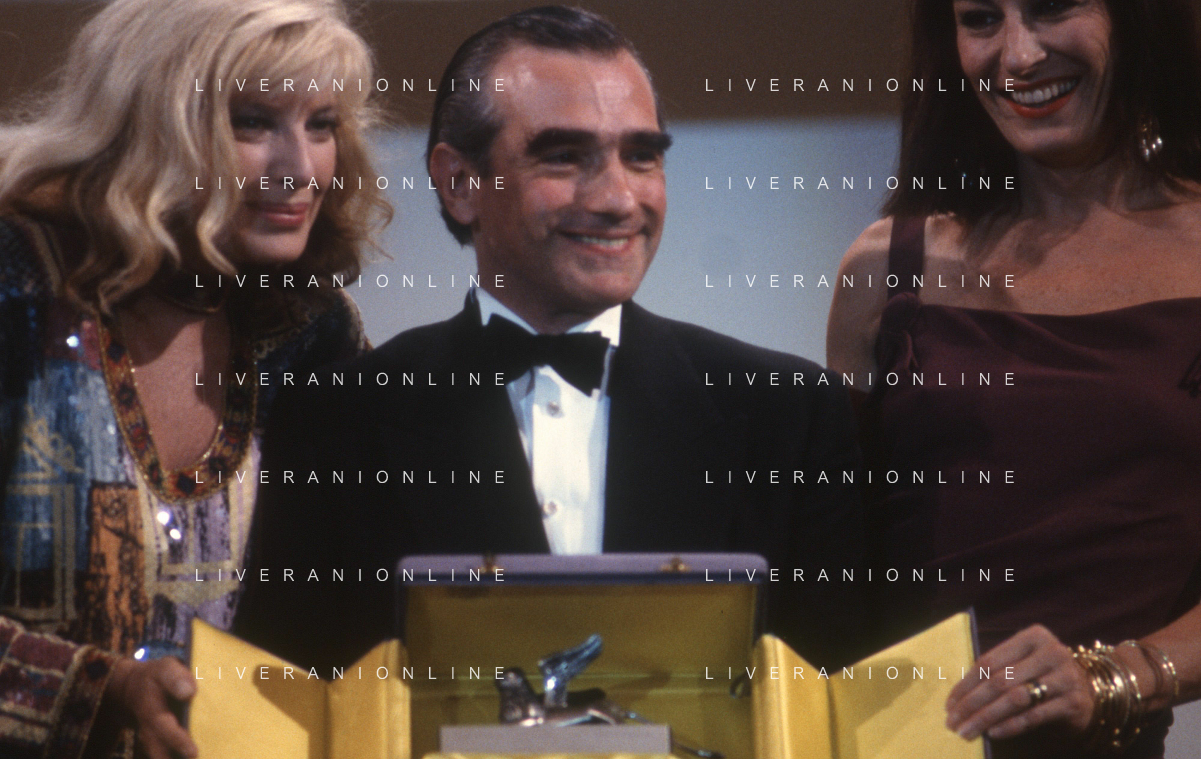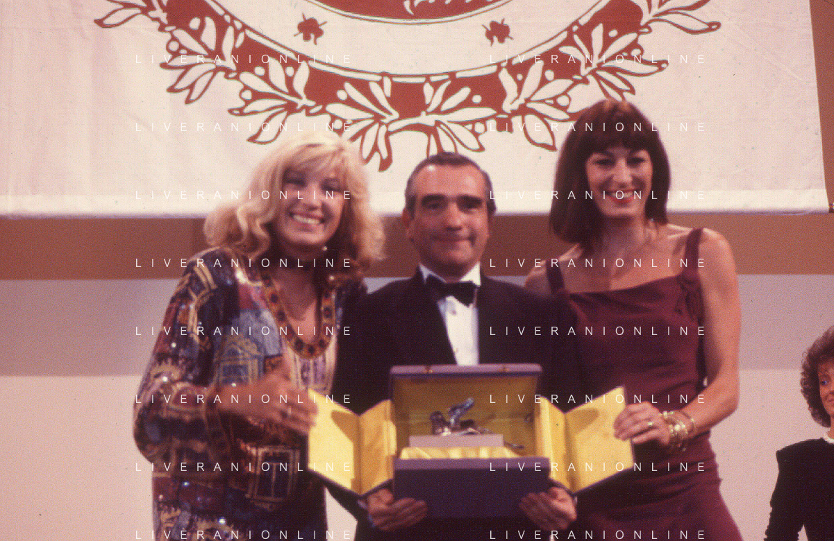 DIAP-RETROSPETTIVA MARTIN SCORSESE REGISTA NELLA FOTO MARTIN SCORSESE CON MONICA VITTI E ANGELICA HUSTON A VENEZIA NELL'ANNO 1990 AG ALDO LIVERANI SAS