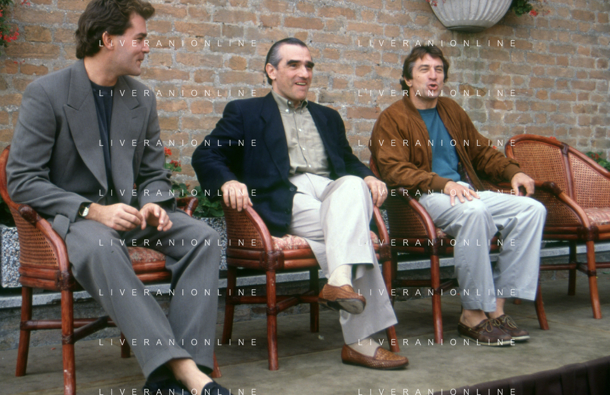 DIAP-RETROSPETTIVA MARTIN SCORSESE REGISTA NELLA FOTO MARTIN SCORSESE CON ROBERT DE NIRO E RAY LIOTTA A VENEZIA NELL'ANNO 1990 AG ALDO LIVERANI SAS