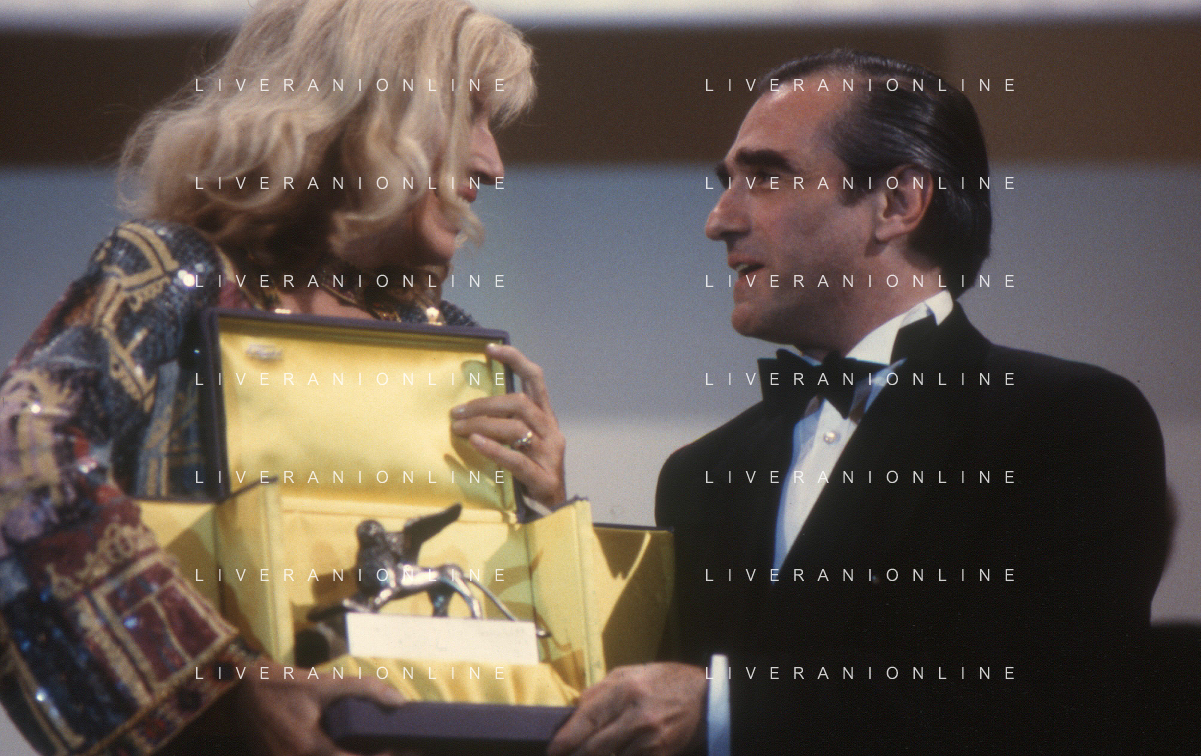 DIAP-RETROSPETTIVA MARTIN SCORSESE REGISTA NELLA FOTO MARTIN SCORSESE CON MONICA VITTI A VENEZIA NELL'ANNO 1990 AG ALDO LIVERANI SAS
