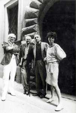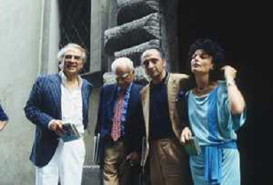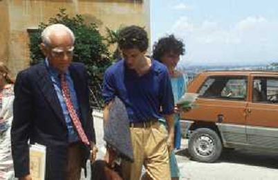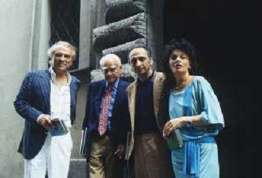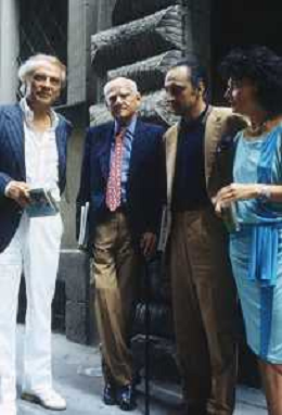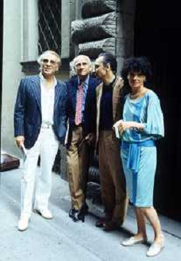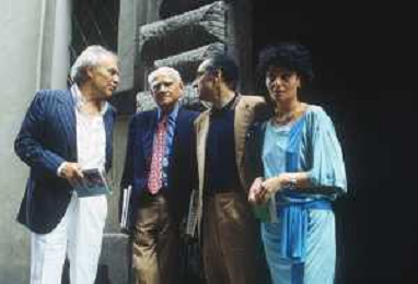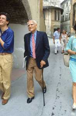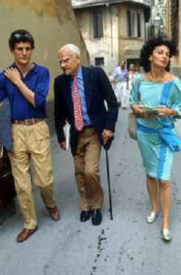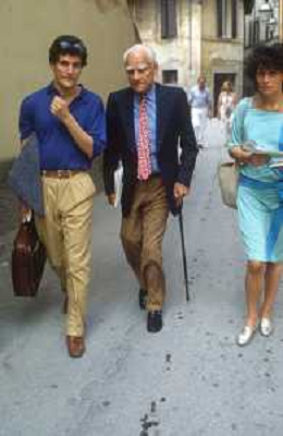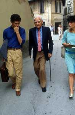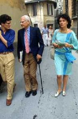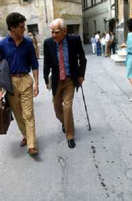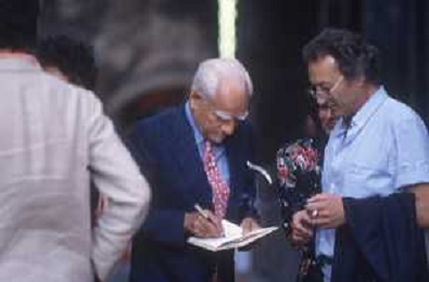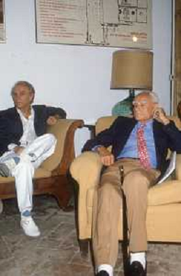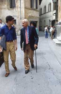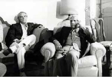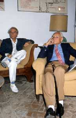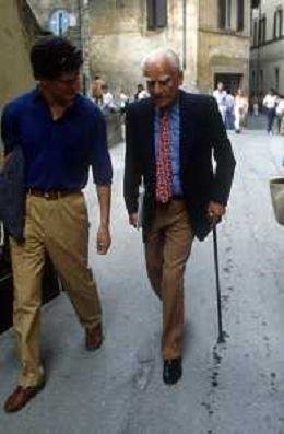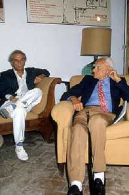 DIAP-RETROSPETTIVA ALBERTO MORAVIA SCRITTORE NELLA FOTO ALBERTO MORAVIA A SPOLETO NELL'ANNO 1985 CON GIORGIO ALBERTAZZI AG ALDO LIVERANI SAS