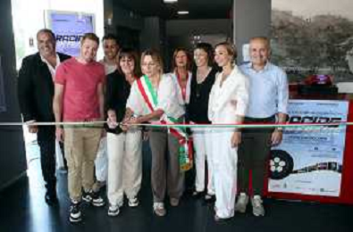 IMOLA 01 08 2025 Museo Checco Costa dell’Autodromo Internazionale Enzo e Dino Ferrari di Imola l'inaugurazione di "Racing in Frame", la mostra dedicata alla storia del Team Gresini NELLA FOTO taglio del nastro PRESENTI ASSESSORE ALL'AUTODROMO ELENA PENAZZI,NADIA GRESINI PADRONA DI TEAM GRESINI,LORENZO GRESINI FIGLIO DI FAUSTO E NADIA,GIANFRANCO MONTANARI PRESIDENTE IMOLA FAENZA TOURISM,ILENIA VALENTI TEAM GRESINI,MAICOL PELLICONI TEAM GRESINI CON LA FOTO DI FAUSTO GRESINI DIETRO LORO ©SANNA - AGENZIA ALDO LIVERANI SAS