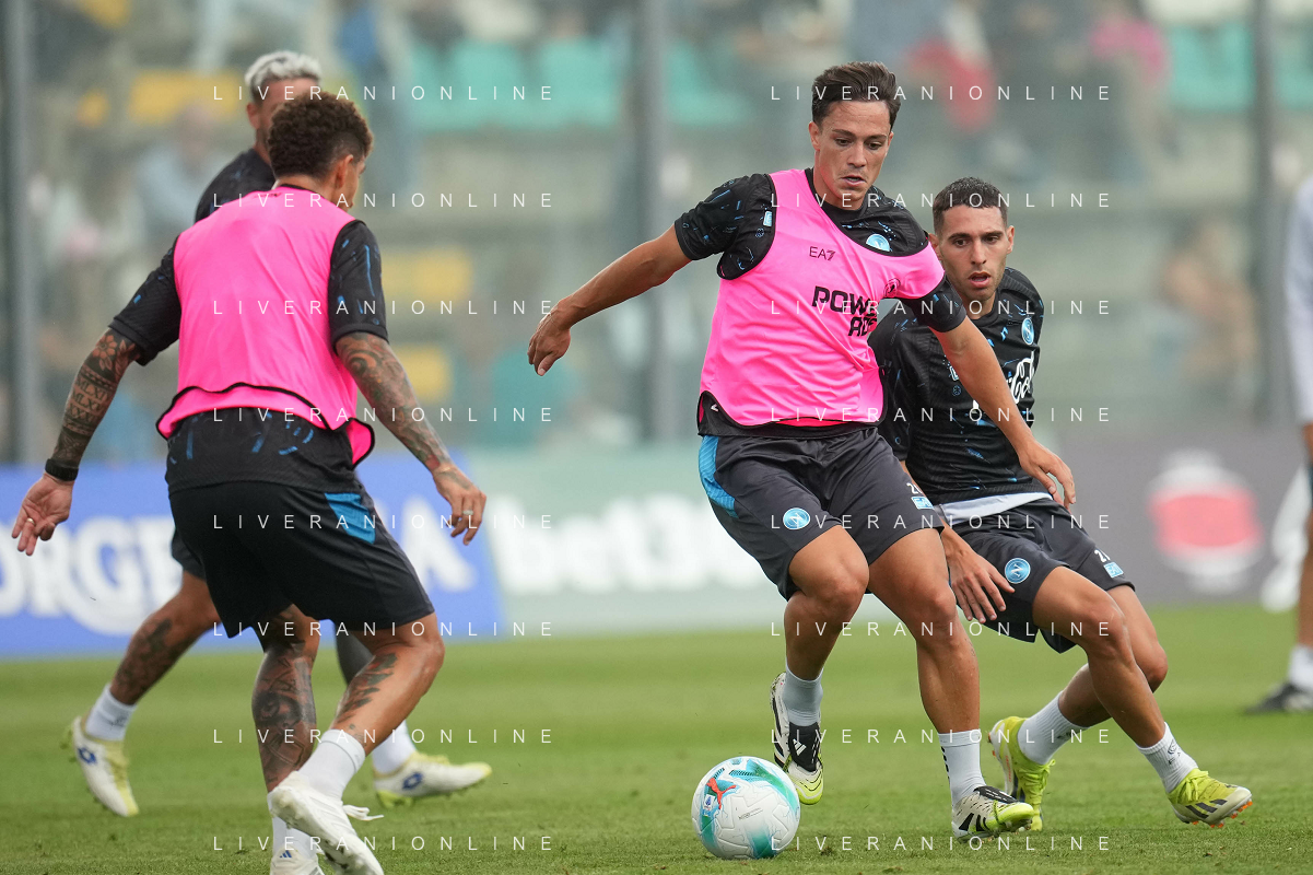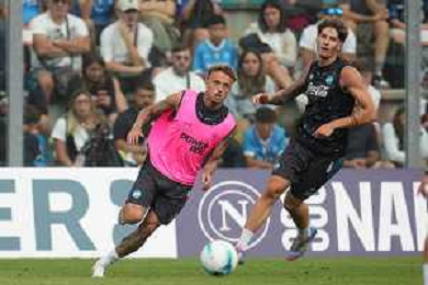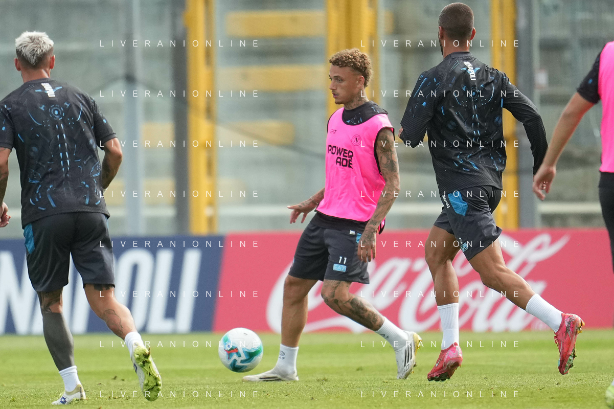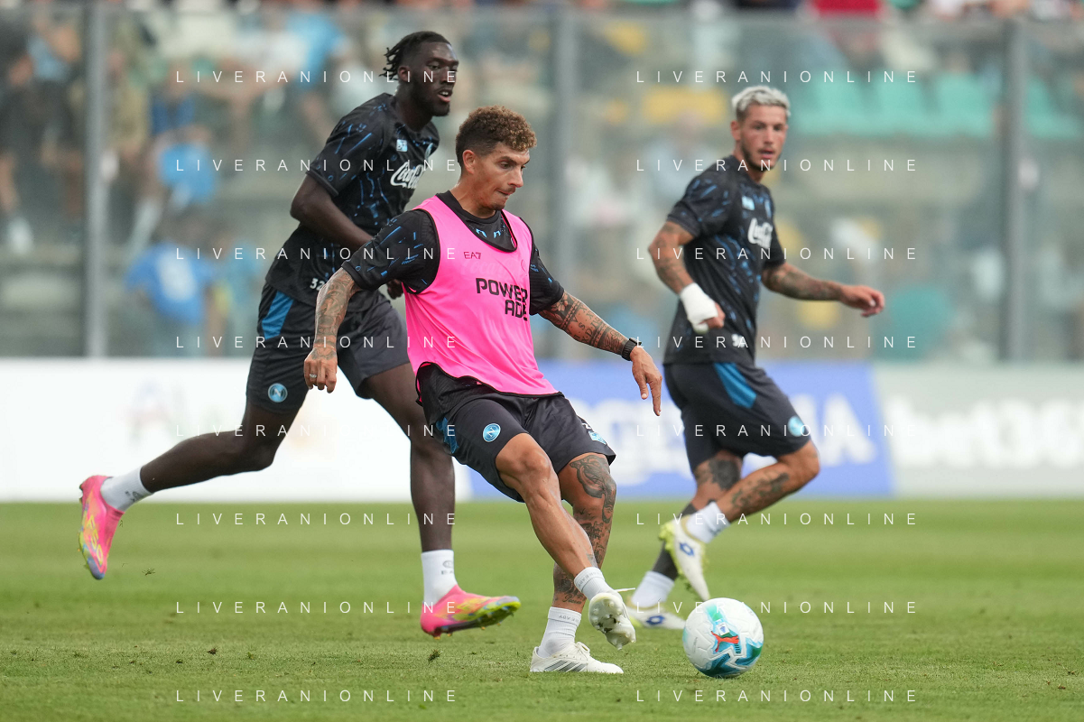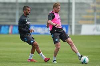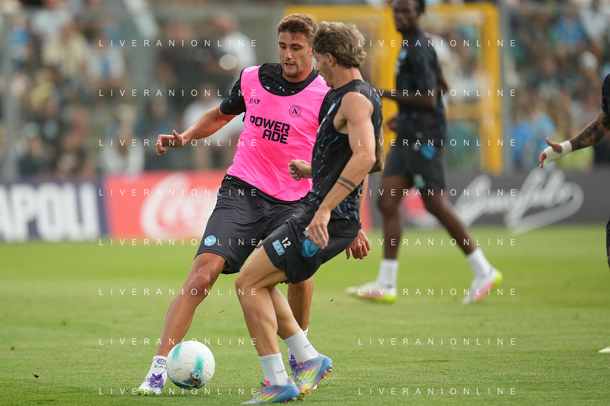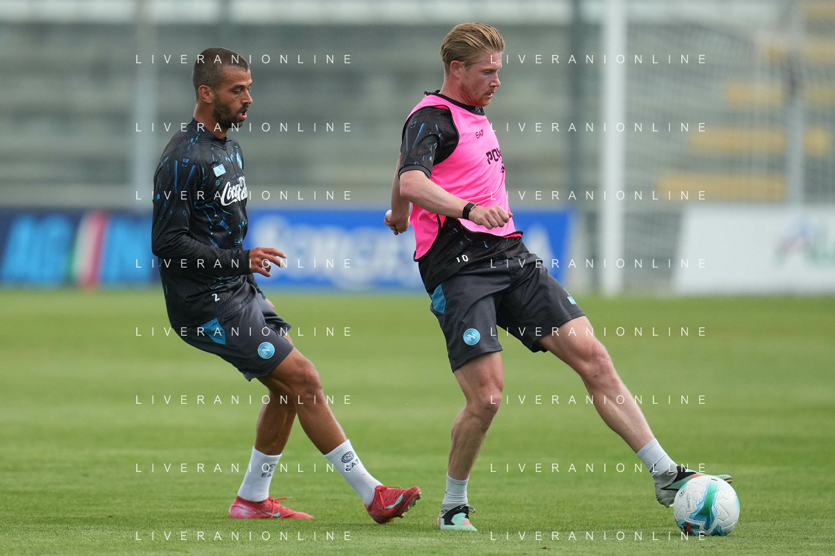 NAPOLI RITIRO PRECAMPIONATO A CASTEL DI SANGRO 01.08.2025 NELLA FOTO: Kevin De Bruyne, Leonardo Spinazzola FOTO MOSCA/AG.ALDO LIVERANI- AGENZIA ALDO LIVERANI SAS